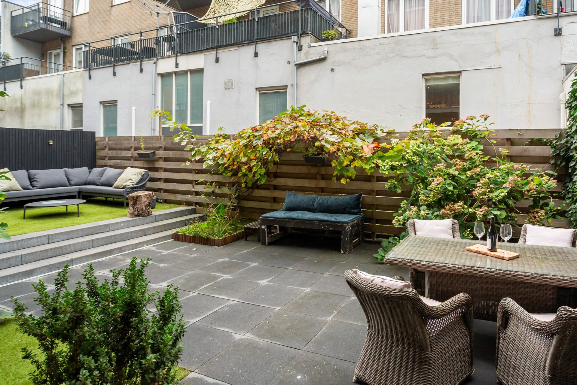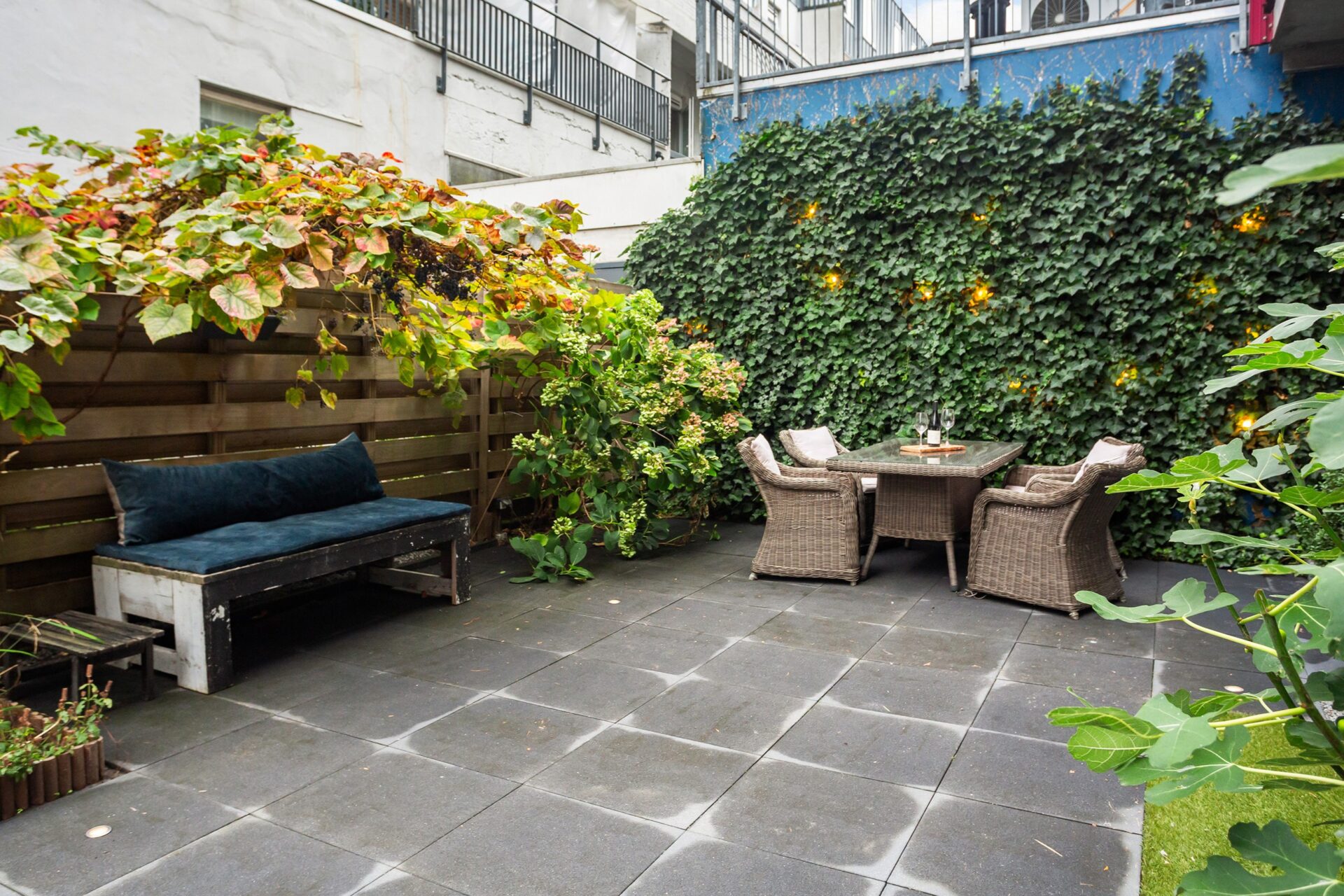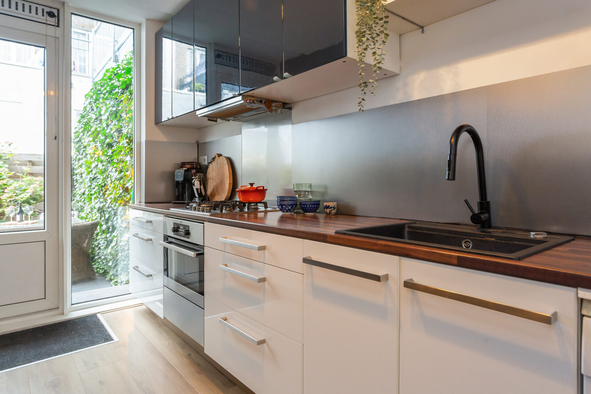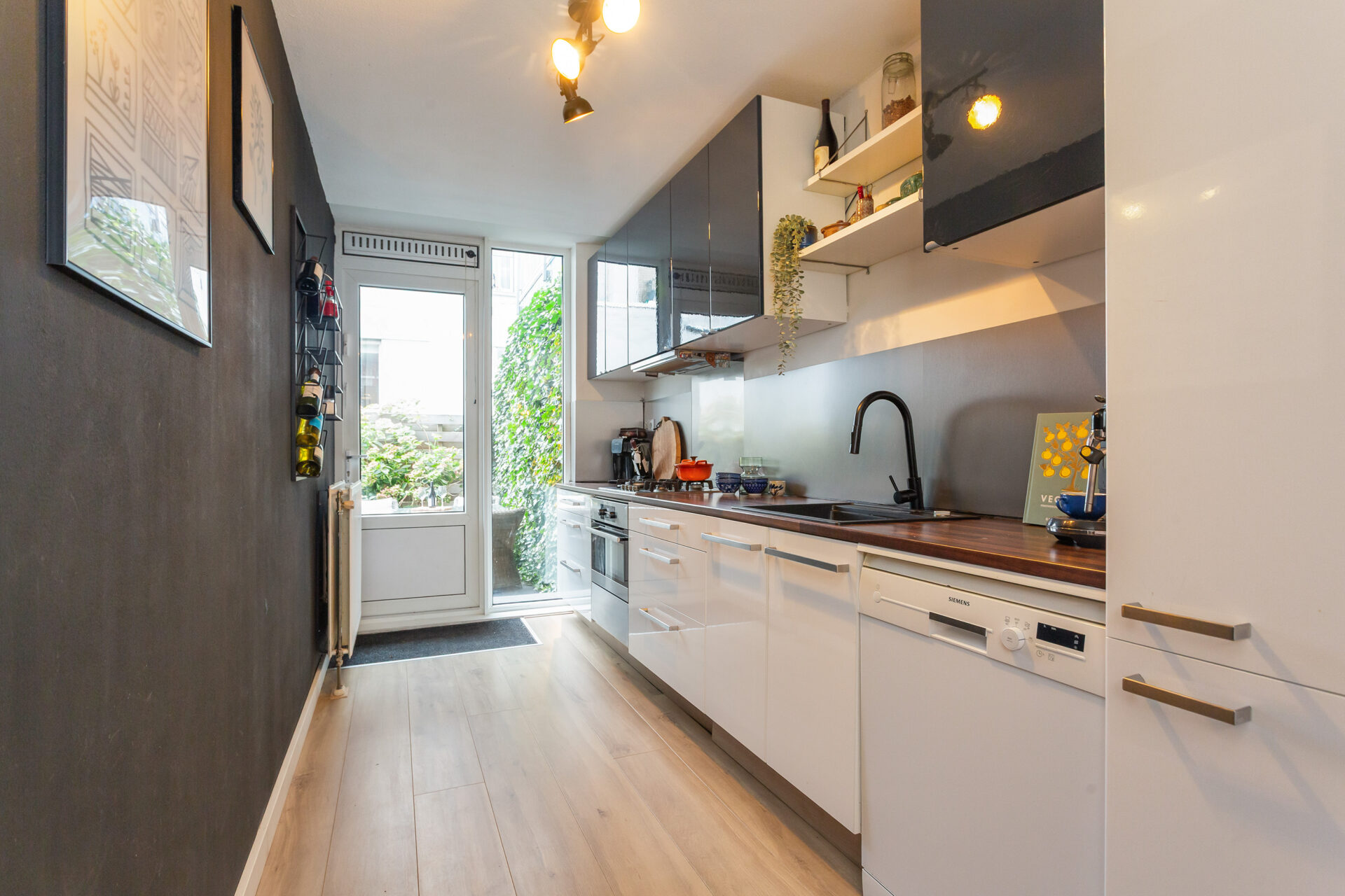 Via de stijlvolle schuifdeur stap je binnen in het royale leefgedeelte van circa 24 m². Dankzij het royale oppervlak richt je de woonkamer makkelijk in met zowel een eethoek als een gezellige zithoek. De keuken is netjes, compleet uitgerust en heeft zelfs een wasmachine- en drogeraansluiting die dankzij de schuifdeur keurig uit het zicht blijft. Vanuit de keuken stap je zo de ruime tuin van meer dan 66 m² in, uniek voor in de stad! De inbouwspots in de grond, de verhoging en in het groen van de klimplanten zorgen ’s avonds voor een sfeervol geheel. Dit is een heerlijke plek van de woning!