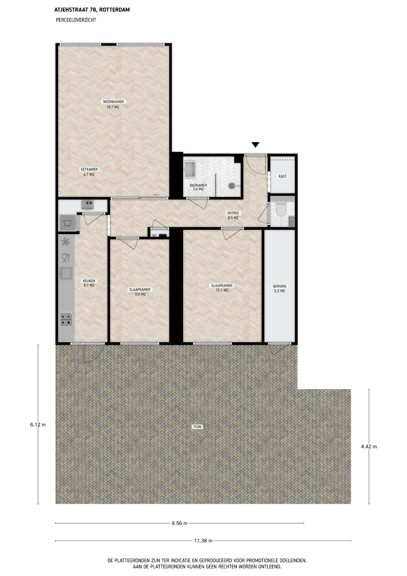 Deze informatie is met de nodige zorgvuldigheid samengesteld. Hierbij zijn wij deels afhankelijk van informatie die wij van derden ontvangen. Indien bepaalde informatie voor u van wezenlijk belang is dan adviseren wij u deze op juistheid te controleren. Onzerzijds wordt geen aansprakelijkheid aanvaard voor enige onvolledigheid, onjuistheid of anderszins, dan wel de gevolgen daarvan. Alle opgegeven maten en oppervlakten zijn indicatief.