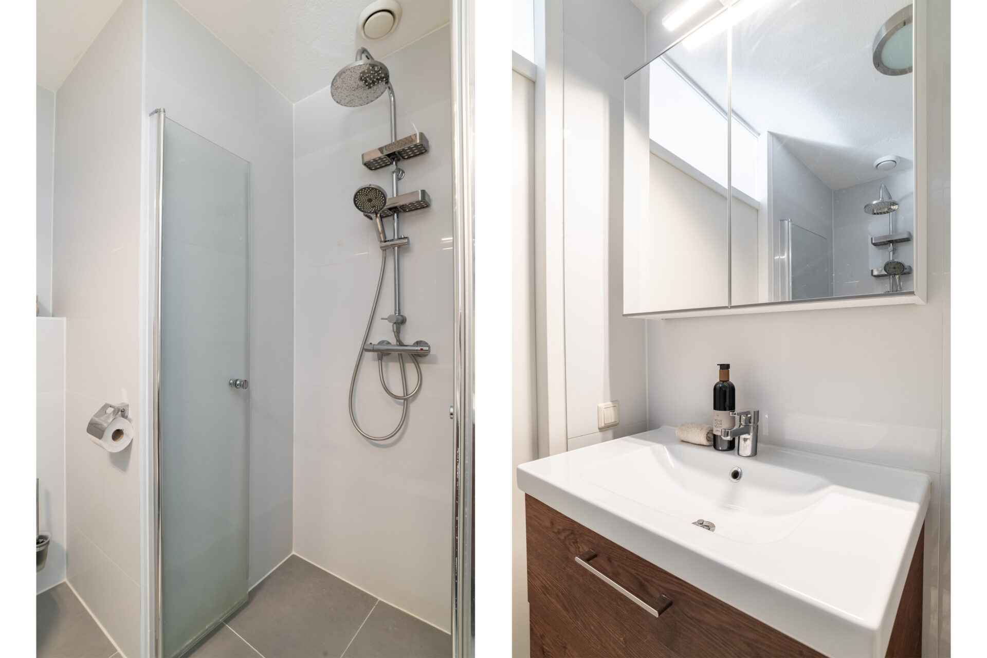 Badkamer: ± 3m², voorzien van een douche, wastafel met meubel en toilet