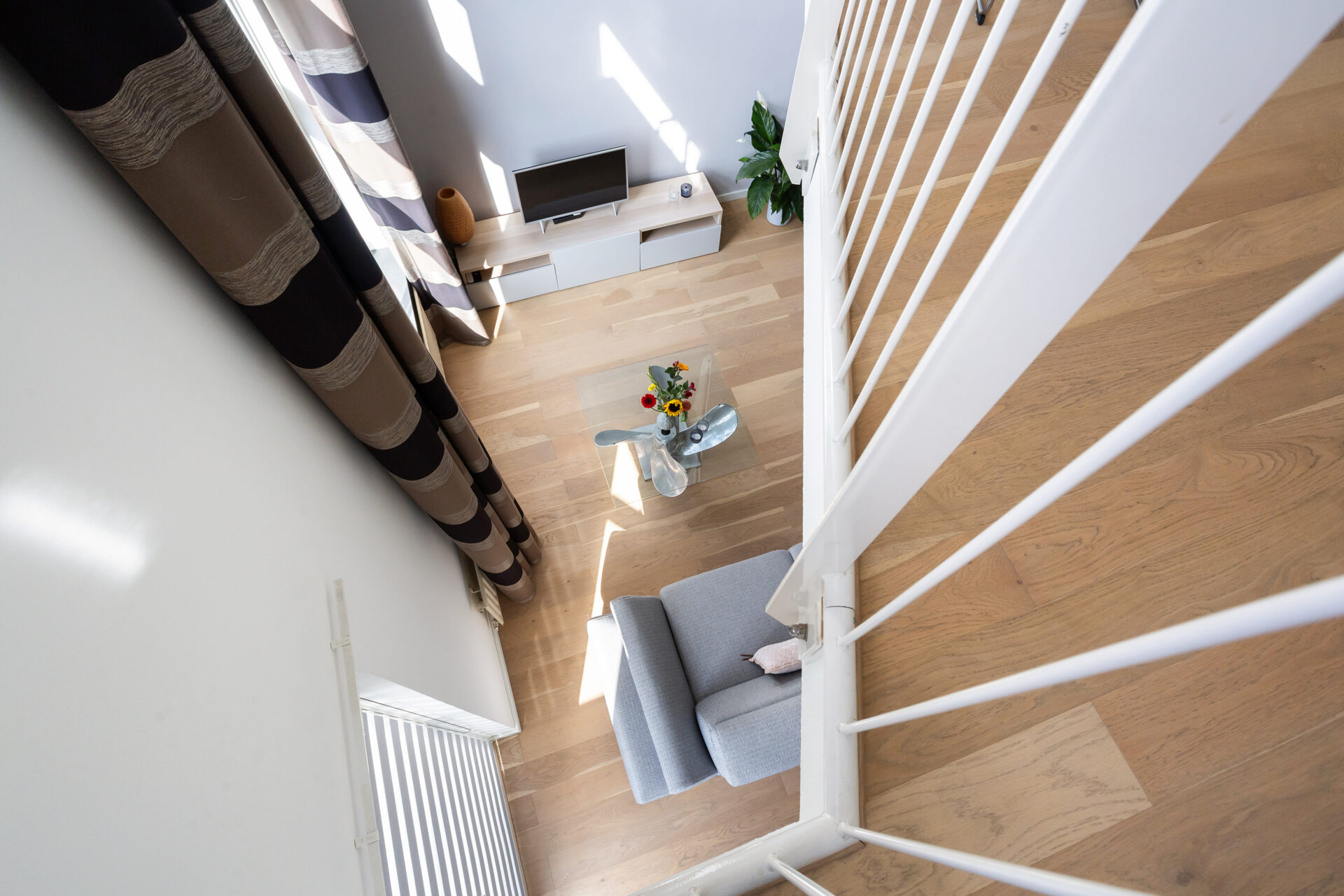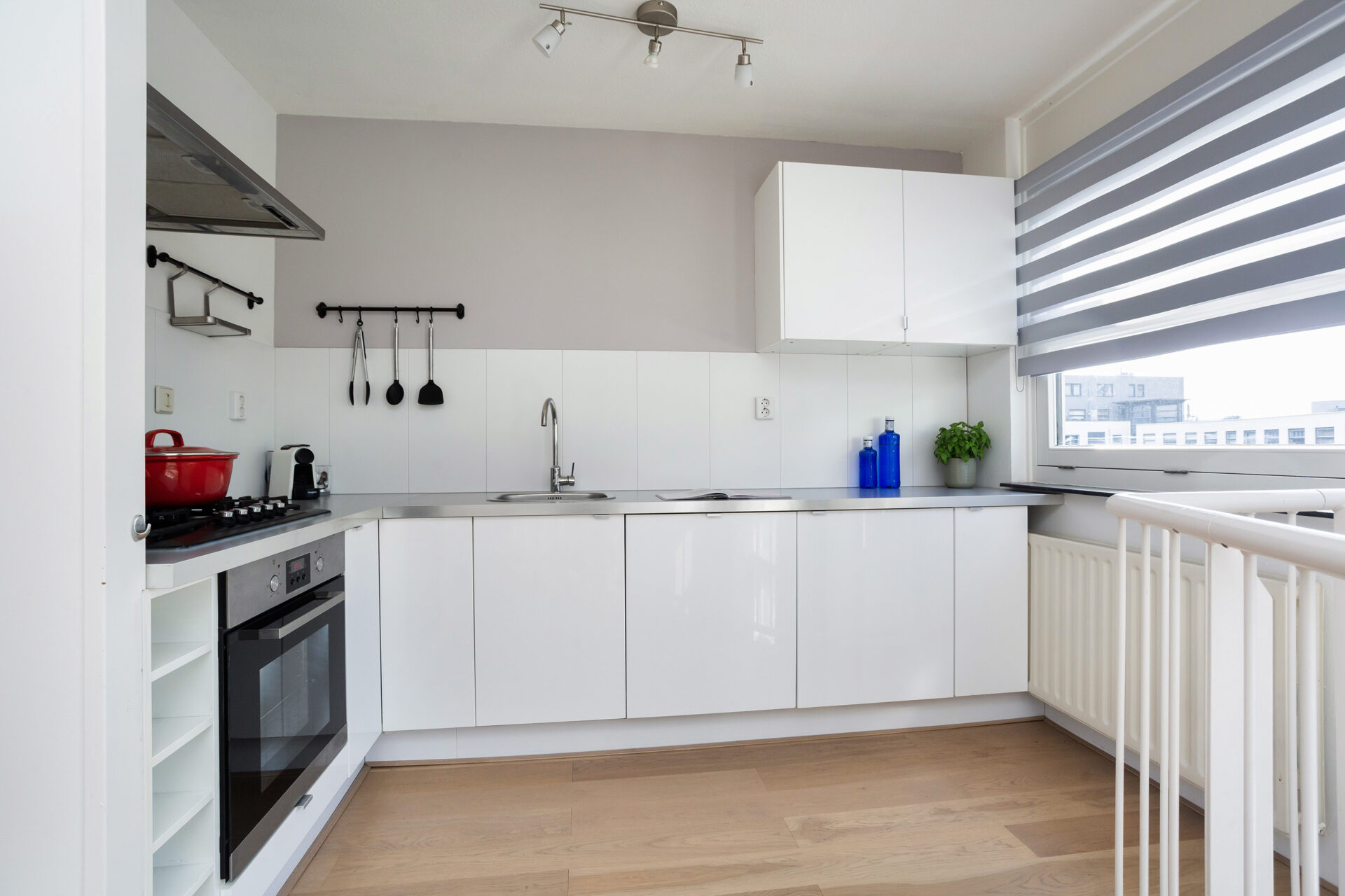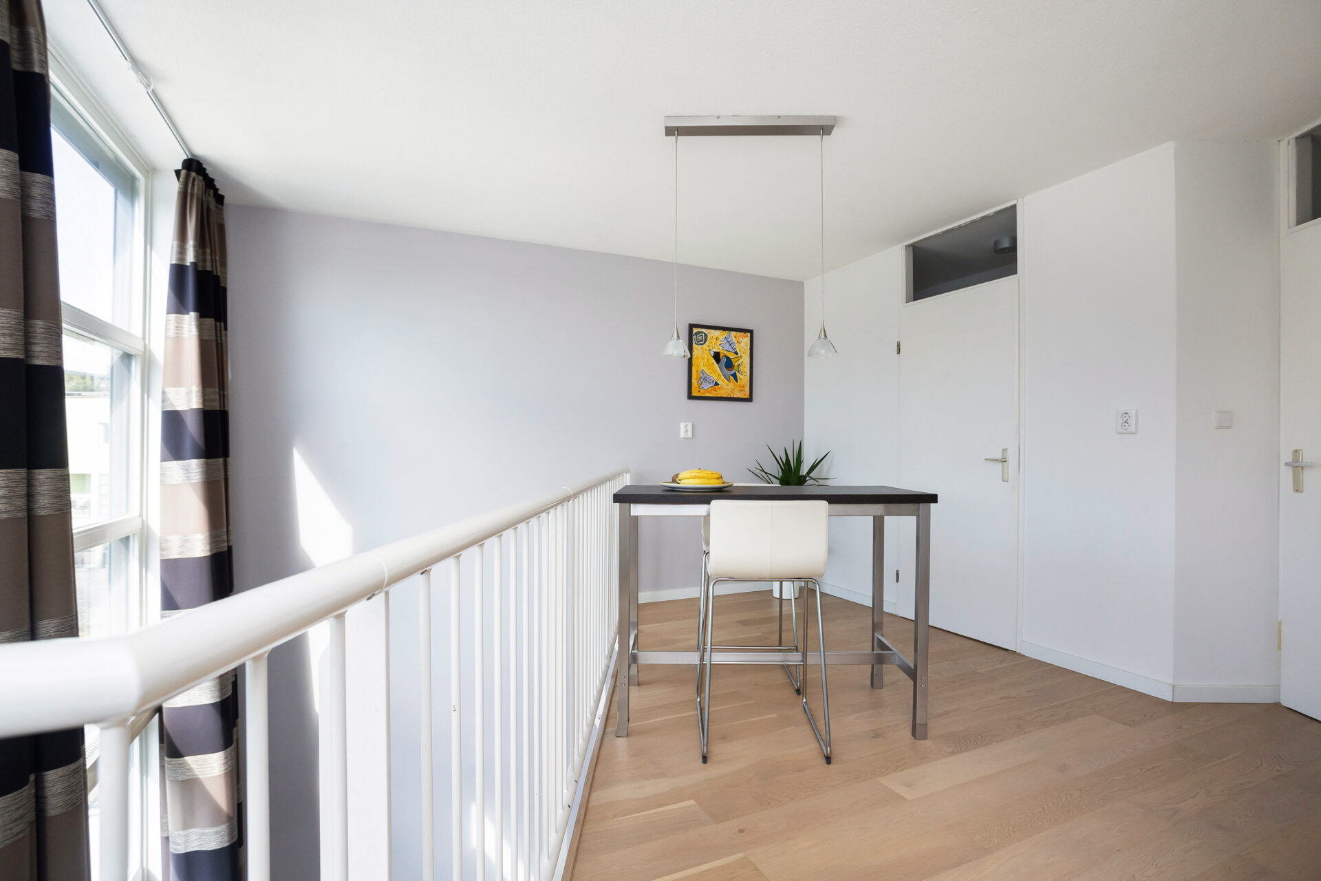 De entree bevindt zich op de 3e verdieping. De nette keuken is volledig uitgerust en biedt alles wat je nodig hebt om met plezier te koken. Dankzij de vide kijk je zo de woonkamer op de 2e verdieping in, wat zorgt voor een speels en open gevoel. De hoge raampartijen van vloer tot plafond laten de ruimte baden in natuurlijk licht. Op deze verdieping vind je ook een slaapkamer die ideaal is als thuiskantoor, kinder- of hobbykamer. Verder is er een nette badkamer met een ruim hoekbad en een praktische inpandige berging met aansluitingen voor de wasmachine en droger.