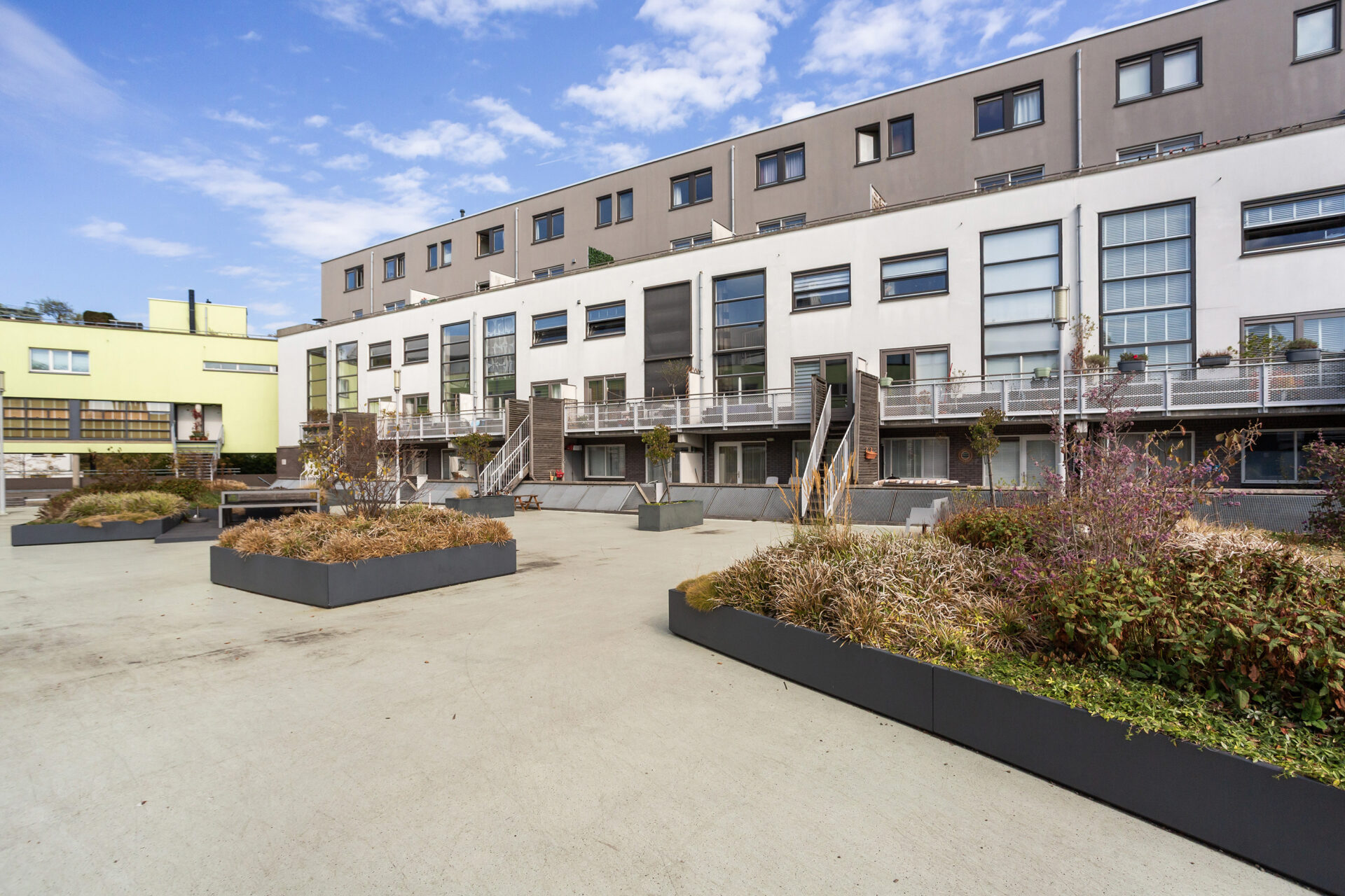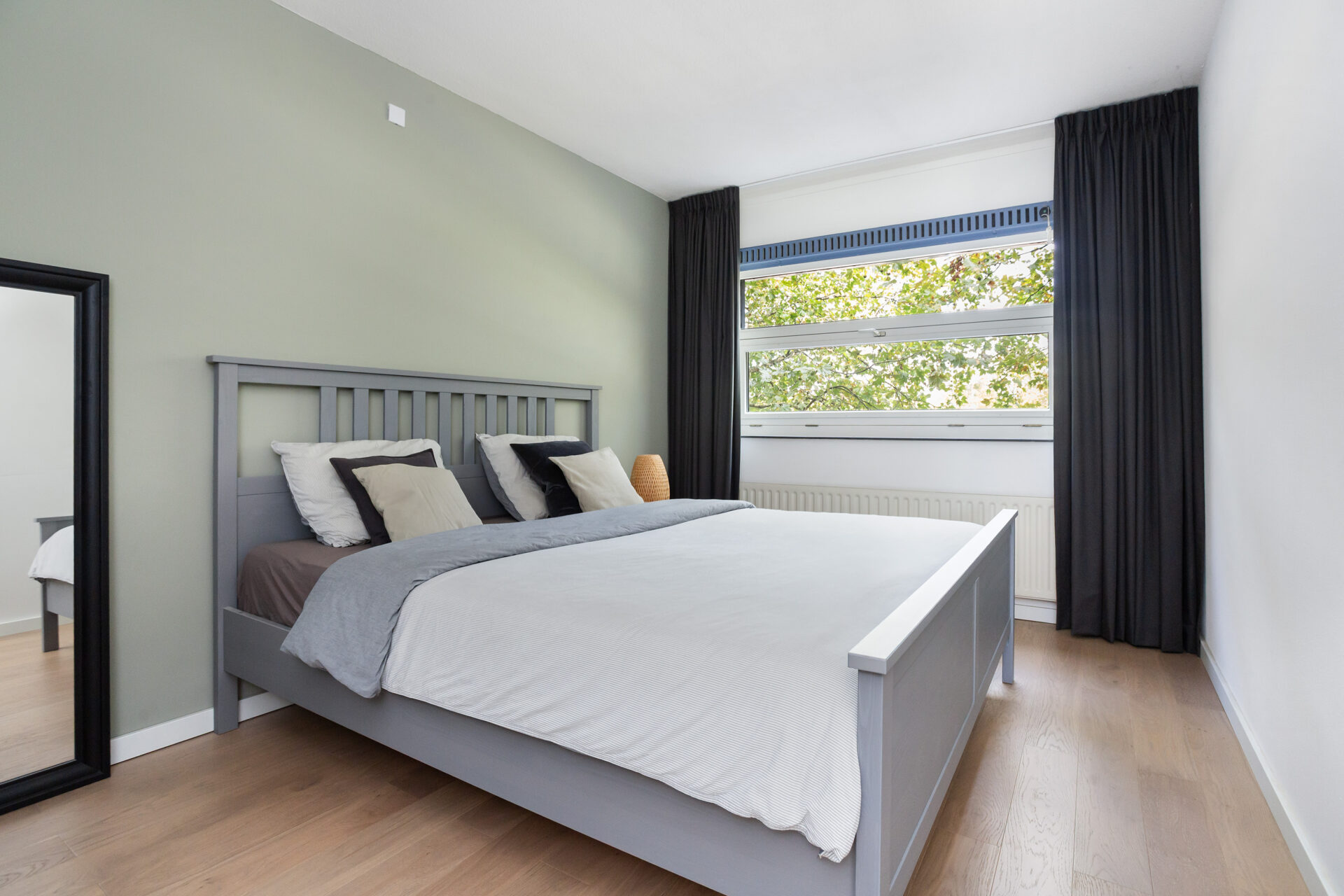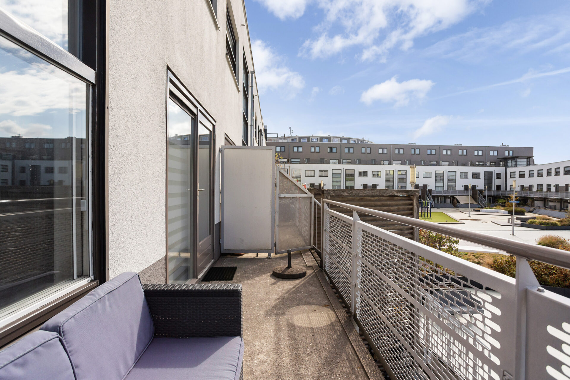 Op de 2e verdieping bevindt zich de ruime woonkamer van circa 30 m². Hier creëer je met gemak een gezellige zit- en eethoek. Vanuit de woonkamer stap je zo het balkon op, waar je in alle rust van de zon geniet en uitkijkt over het besloten binnenterrein waar kinderen veilig kunnen spelen. Op deze verdieping zijn bovendien nog twee volwaardige slaapkamers, waarvan de master bedroom een oppervlak heeft van ± 12 m². Extra handig zijn de kleine berging boven de trap en de trapkast, perfect voor al je extra spullen. En als kers op de taart beschikt de woning ook nog over een eigen parkeerplaats in de afgesloten parkeergarage.