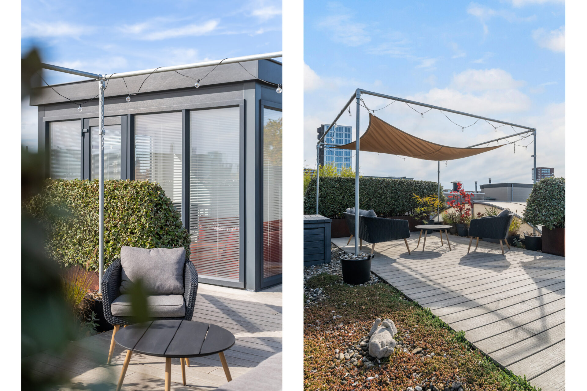 Daarnaast beschikt de woning over een inpandige berging én een extra berging op de begane grond voor alle spullen die je liever uit het zicht hebt. Voor fietsen is ruimte in de gemeenschappelijke fietsenberging met daarboven als extra nog een gezellig en groen gemeenschappelijk dakterras.