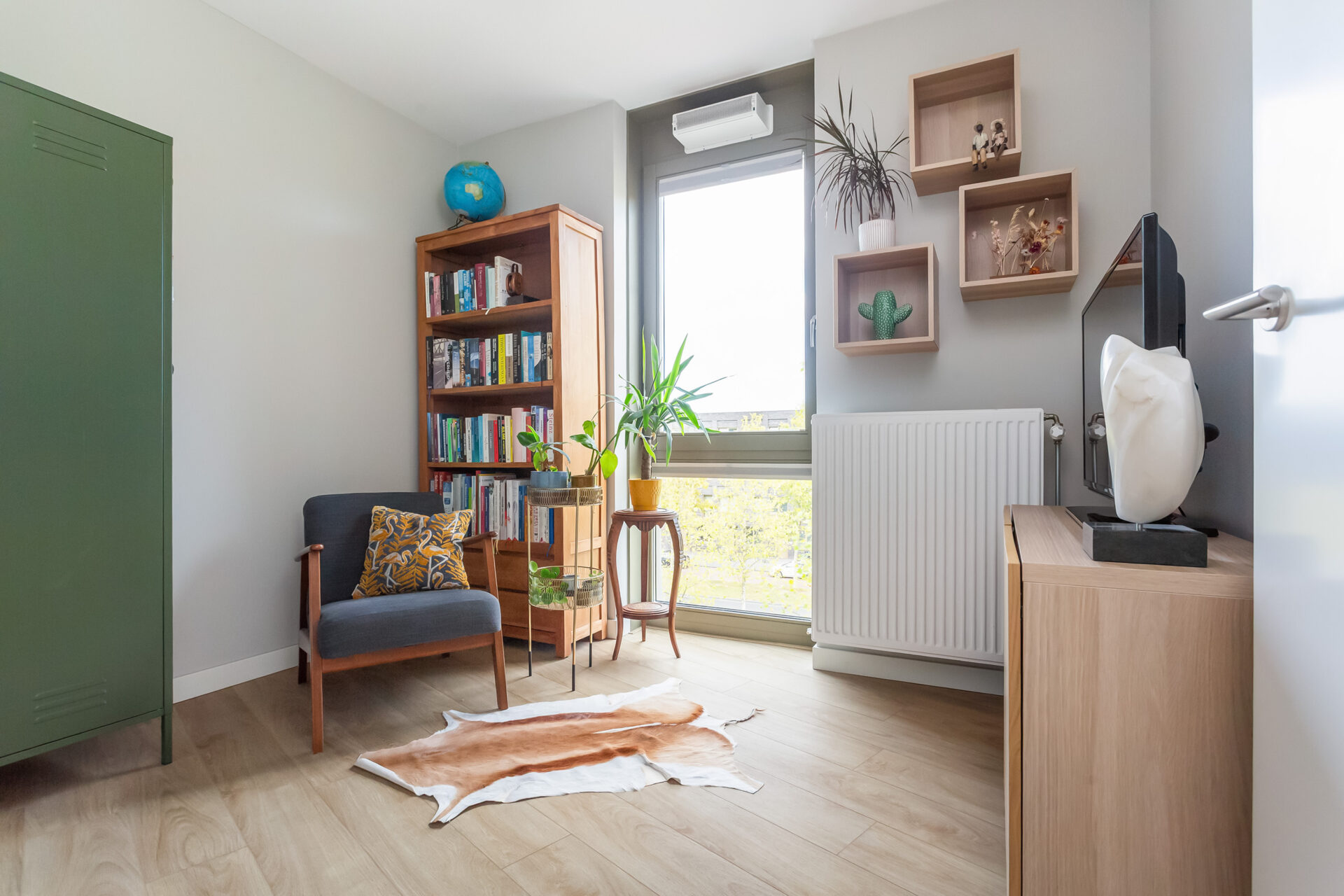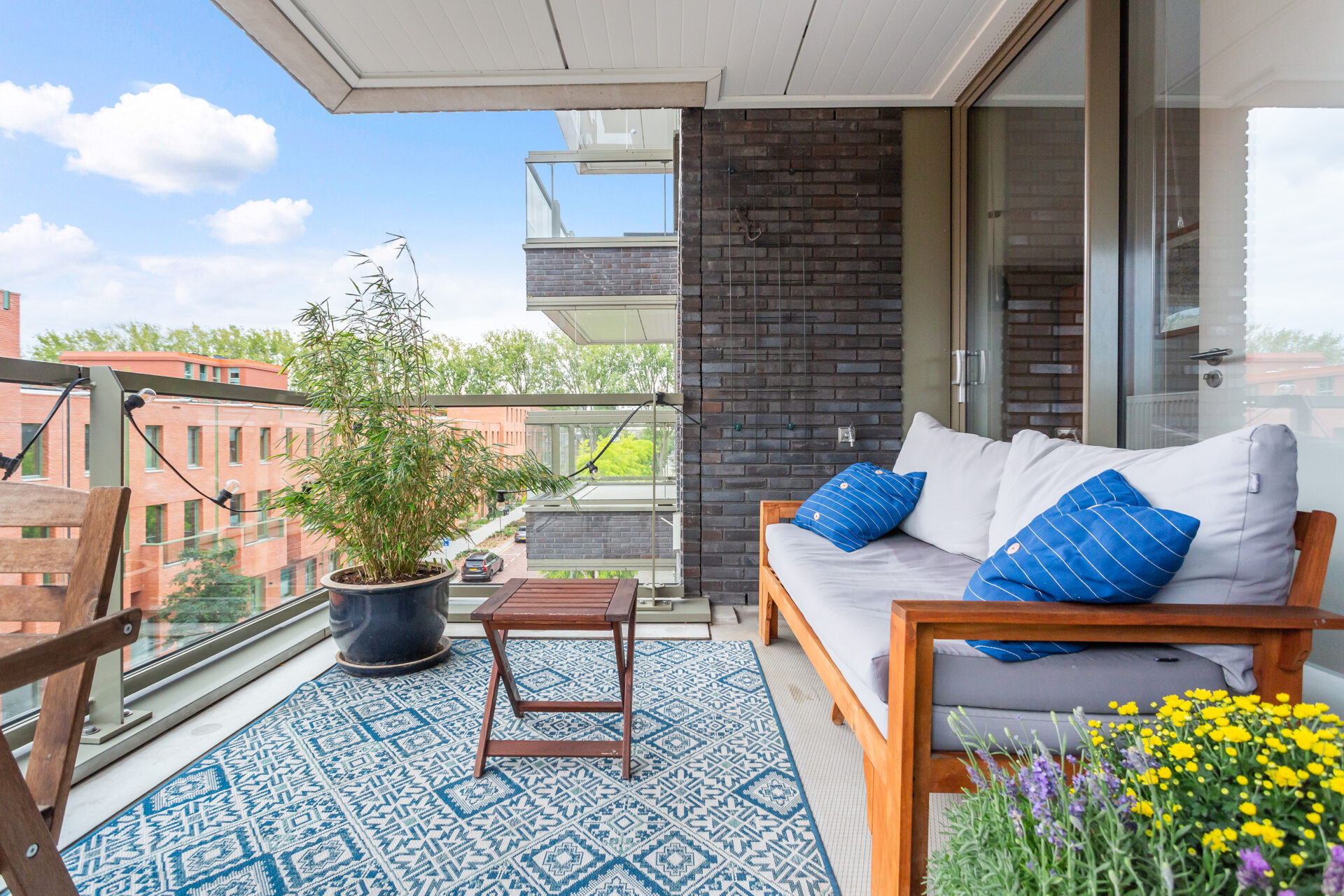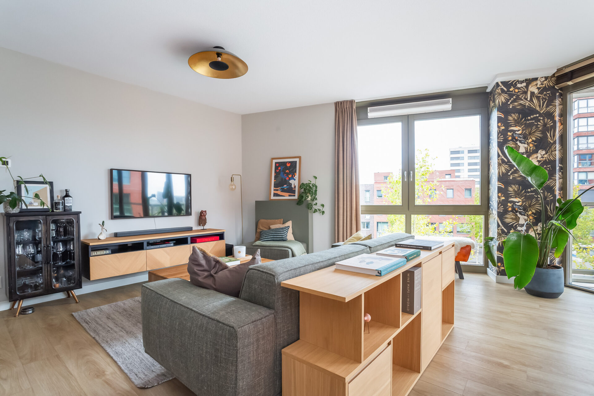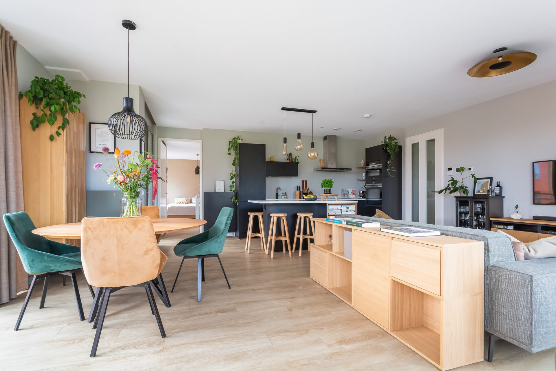 De woonkamer is heerlijk licht dankzij de hoekligging en de vele ramen. De open keuken met kookeiland en bar trekt direct je aandacht: strak, gezellig en perfect voor de kookliefhebber. Terwijl jij kookt, zit iedereen gezellig aan de bar. Vanuit de woonkamer stap je zo beide balkons op. Aan de rustige zijkant vind je de grootste, waar je ’s ochtends met een kop koffie in de zon kunt zitten. De lichte pvc- vloer door de hele woning zorgt voor een mooi en rustig geheel.