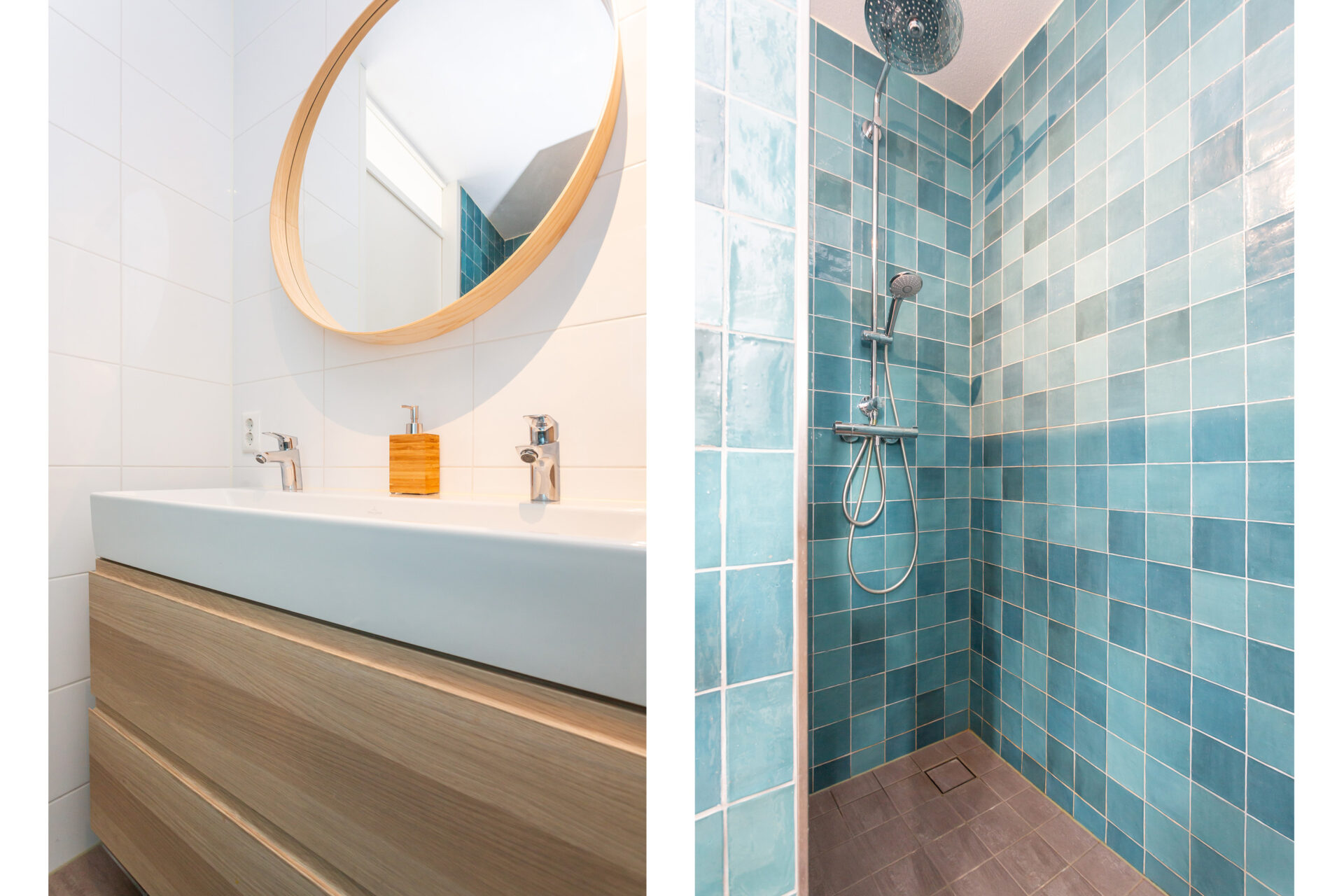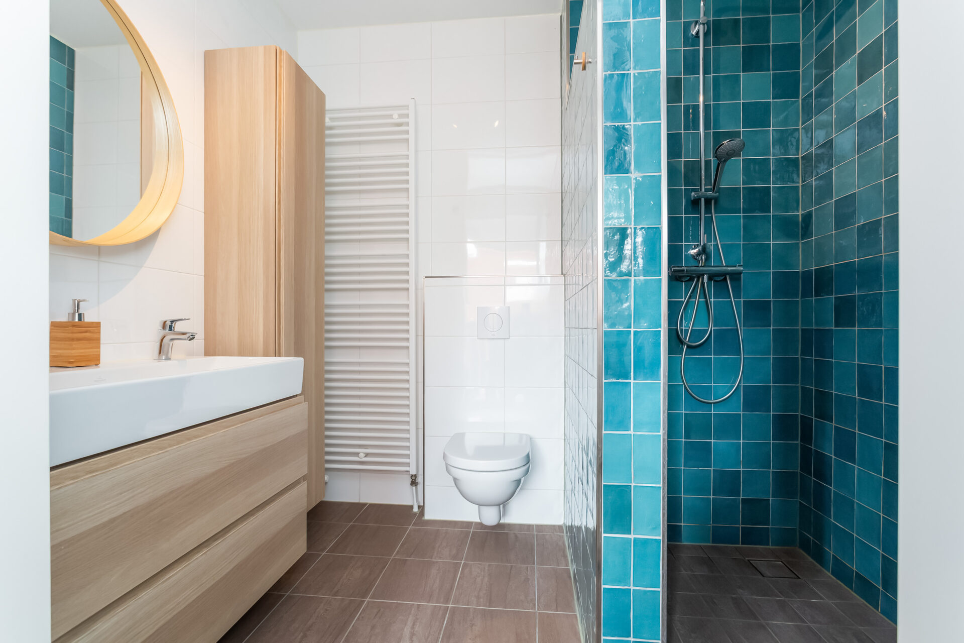 Badkamer I: ± 5 m², voorzien van inloopdouche, dubbele wastafel en meubel, designradiator en toilet