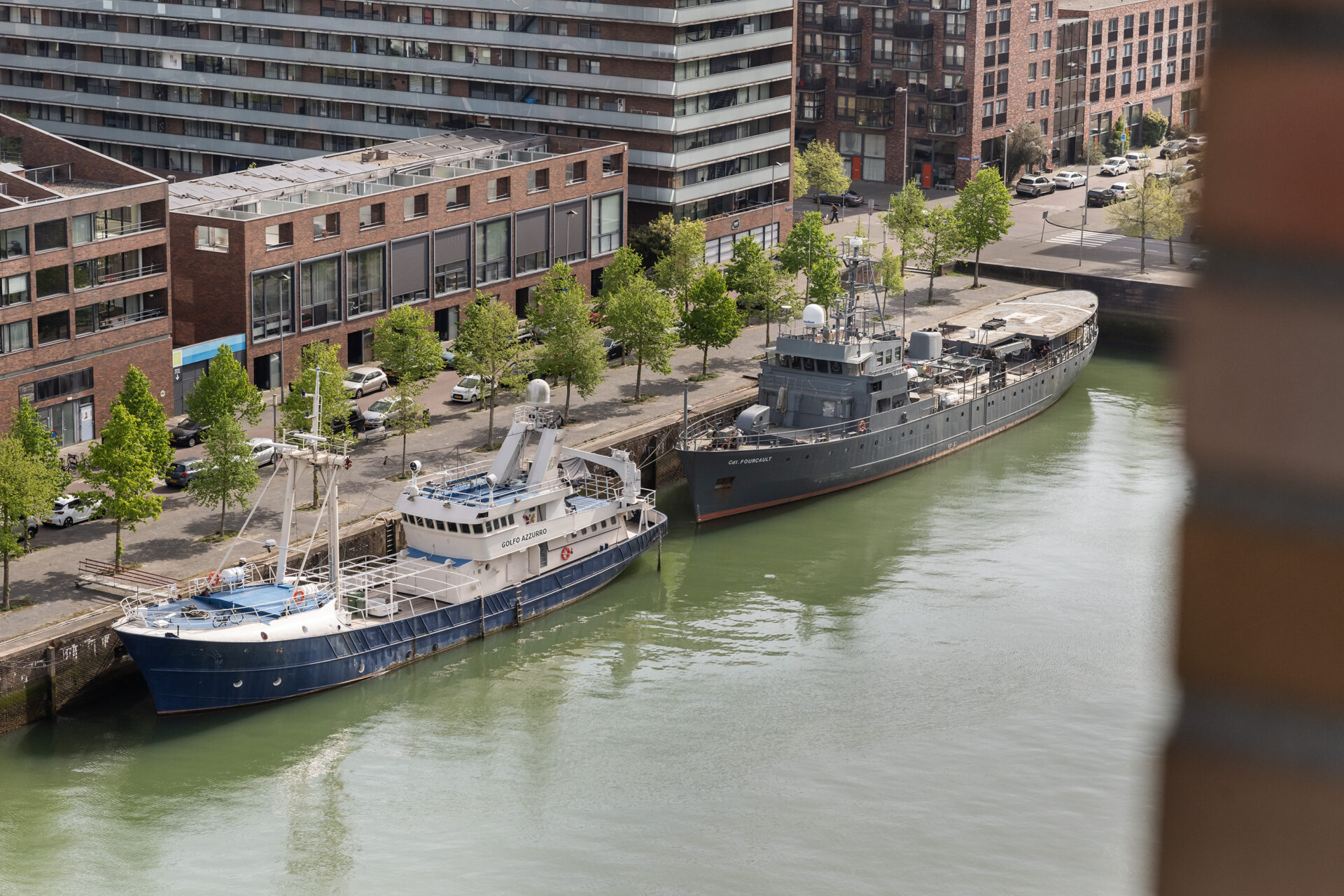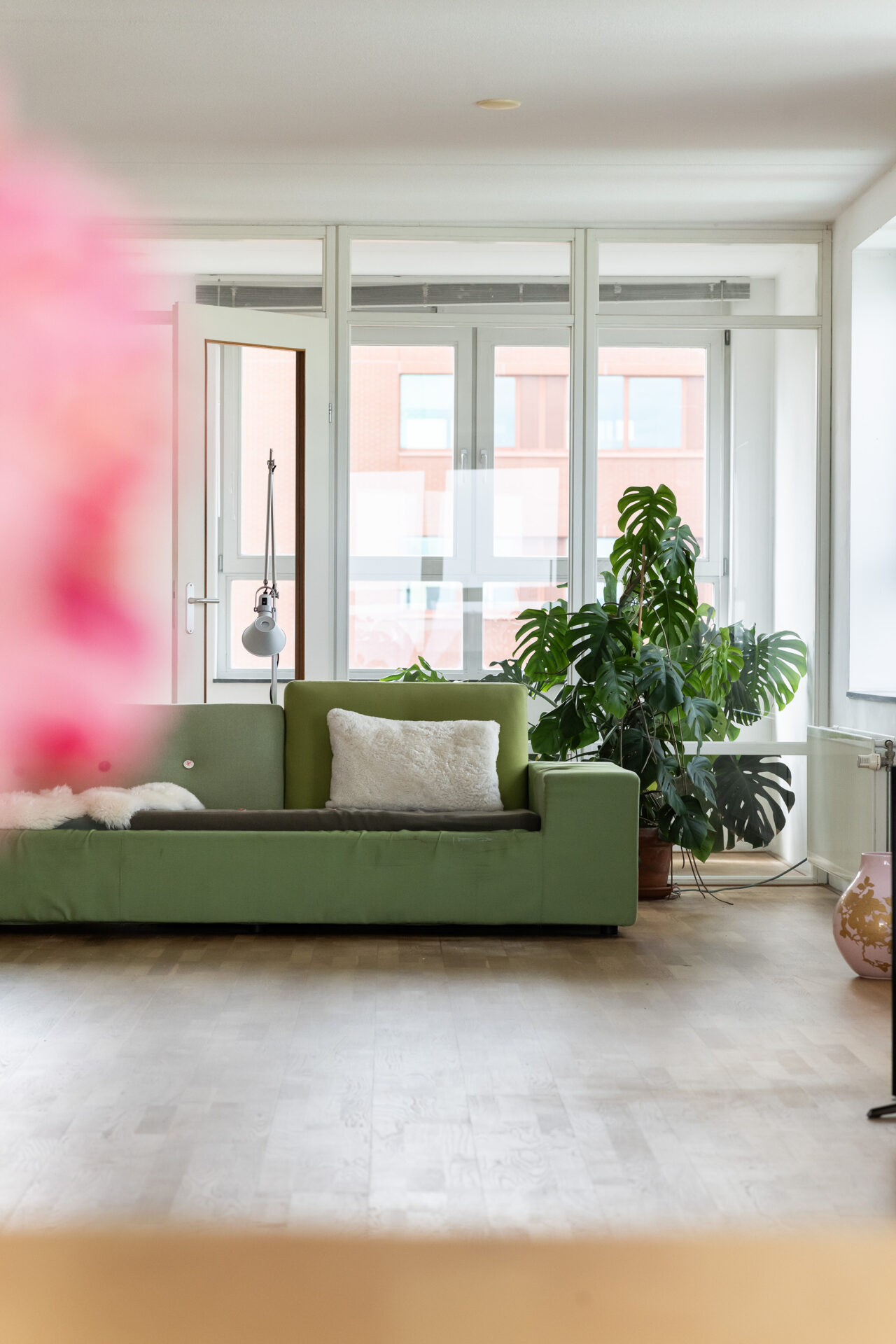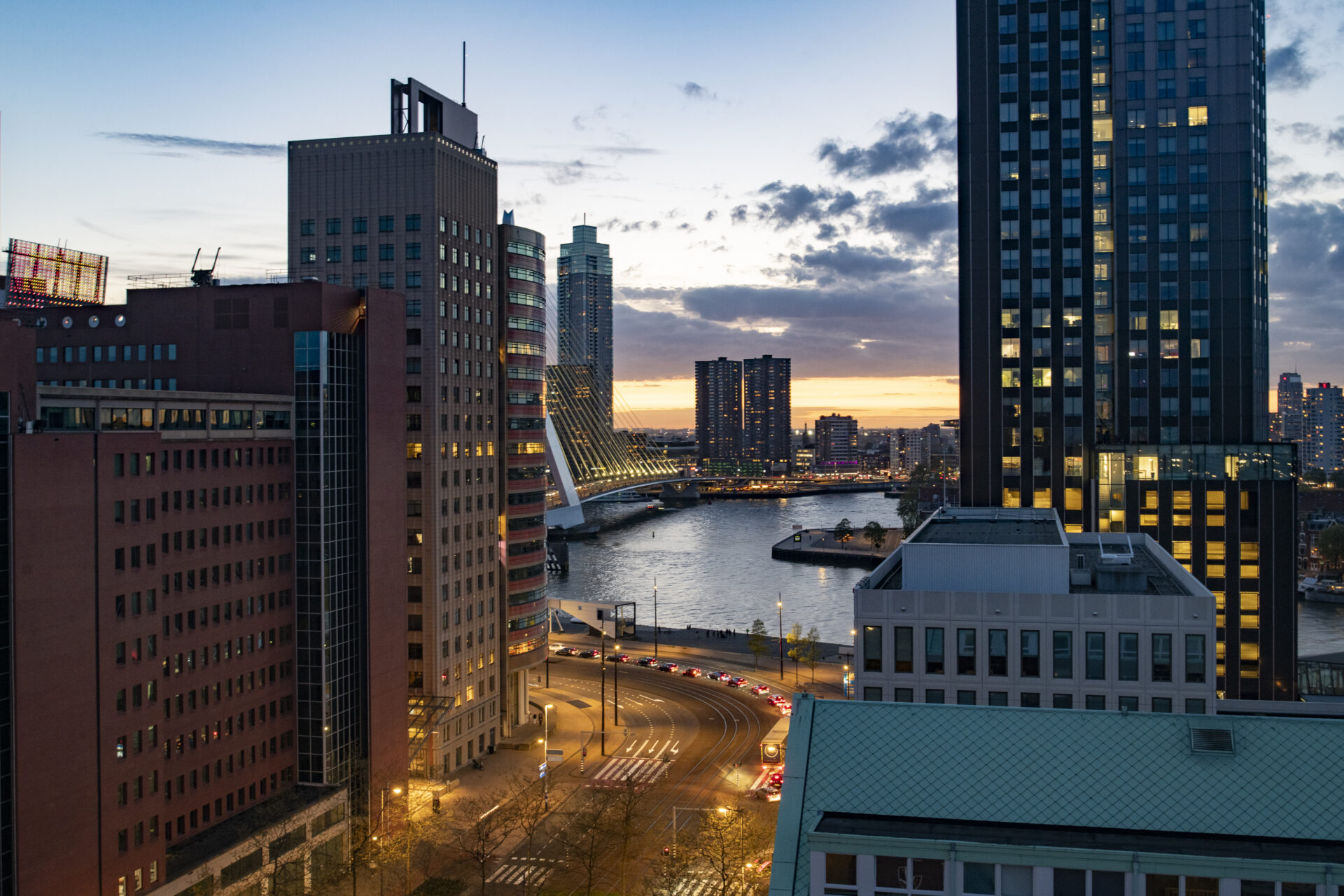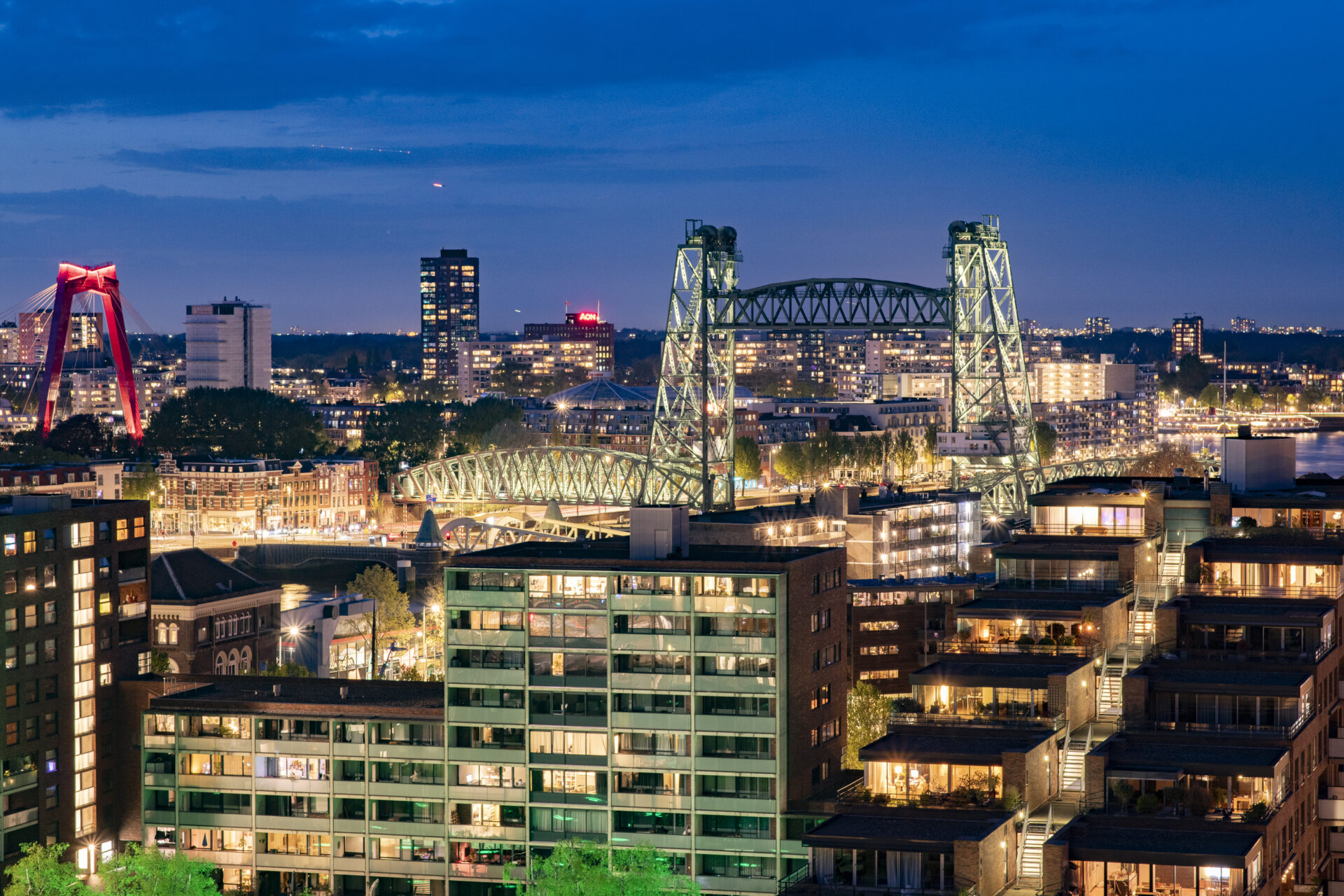 Elke dag weer zijn wij onder de indruk van het fenomenale uitzicht. Vanuit de 15e verdieping zie je – gewoon zittend op de bank – de stad, de skyline, de rivier en de wolkenluchten voorbijkomen. We genieten enorm van de bedrijvigheid op de Nieuwe Maas; regelmatig zien we nieuw gebouwde superjachten, drijvende kranen en pontons voorbijvaren. Een jaarlijks feest is de marathon, waarbij we de duizenden deelnemers vanaf de start op de Erasmusbrug direct langs ons gebouw zien lopen. Ondanks dat je hier midden in de stad woont, is het appartement een oase van rust. Onze slaapkamer ligt aan de zijde van de Spoorweghaven en is echt stil. Ook het klimaat in huis is erg prettig: in de zomer blijft het binnen heerlijk koel omdat de zon alleen in de vroege ochtend en de avond direct naar binnen schijnt. We gaan deze plek en dit unieke schouwspel zeker missen.