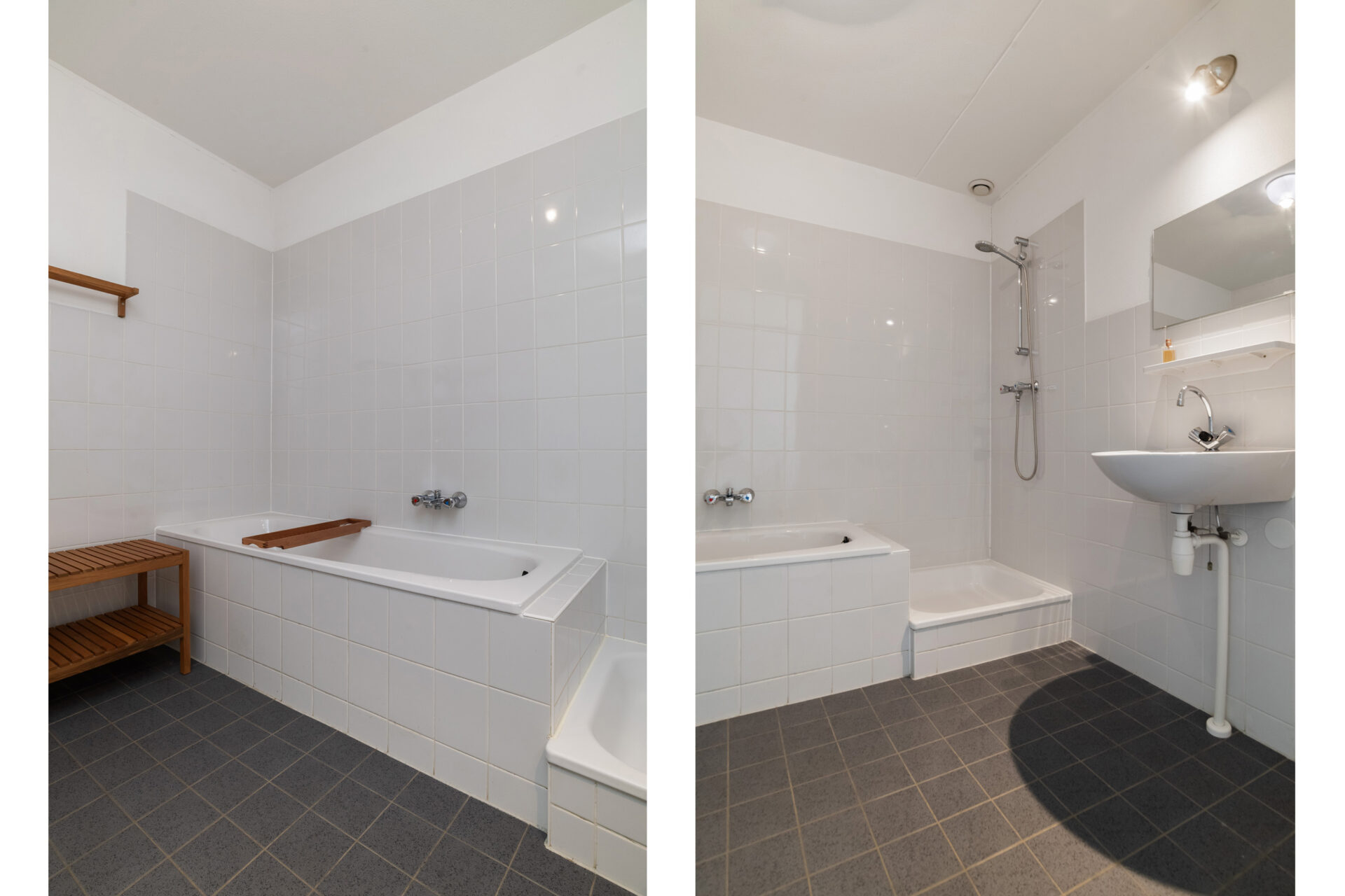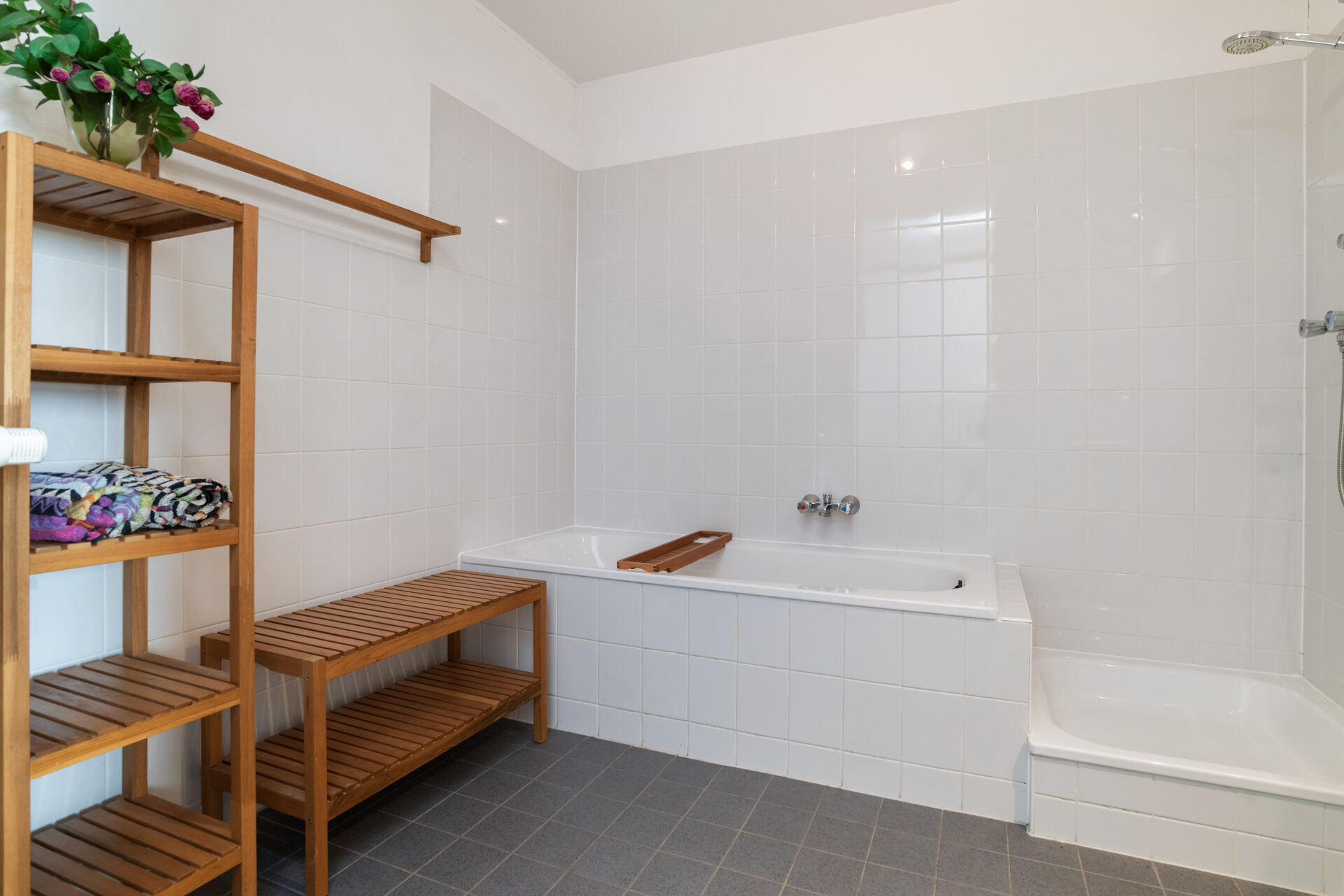 Badkamer: ± 6 m², voorzien van een ligbad, douche, enkele wastafel en radiator