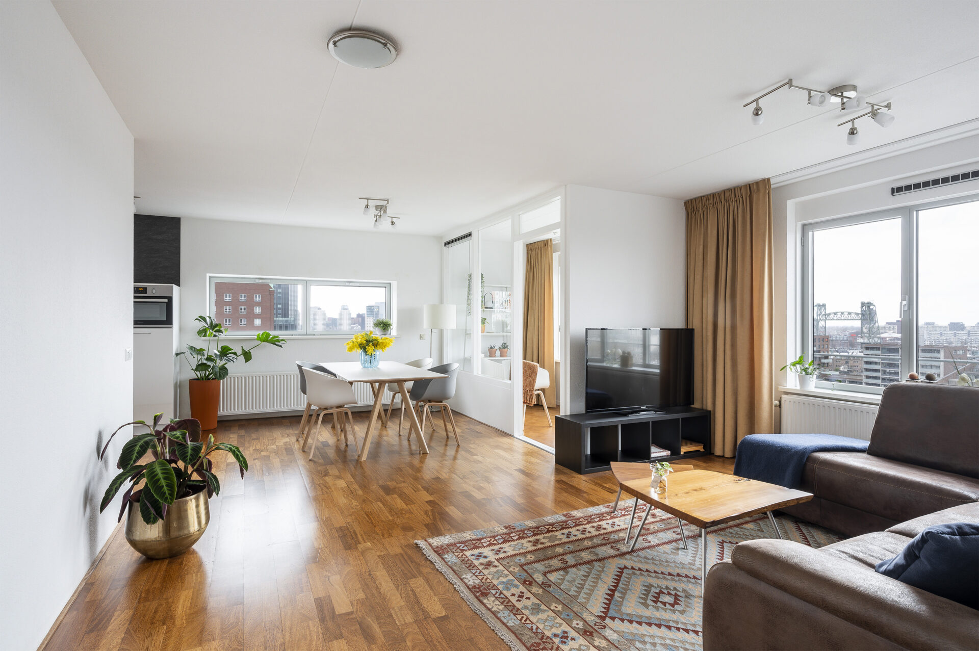 We verkopen dit prachtige appartement om één reden: we gaan dichter bij ons werk wonen. Als dat niet zo was, hadden we hier met geen mogelijkheid weg gewild. Elke dag thuiskomen voelde hier echt als een cadeautje. Het uitzicht blijft bijzonder en verveelt nooit, van de vroege ochtend tot in de avond. De locatie is ideaal, met goede openbaarvervoerverbindingen, supermarkten op loopafstand en om de hoek de Wilhelminakade, perfect voor een rustige wandeling langs het water. Dit is een fijne thuisbasis, waar vrienden graag over de vloer komen en waar je altijd met plezier naar terugkeert. Of je nu net van vakantie komt of na een lange werkdag de deur achter je dichttrekt. Een plek waar stadsleven, comfort en rust op een prettige manier samenkomen. We hopen dat de volgende bewoners hier net zo van zullen genieten als wij dat hebben gedaan.