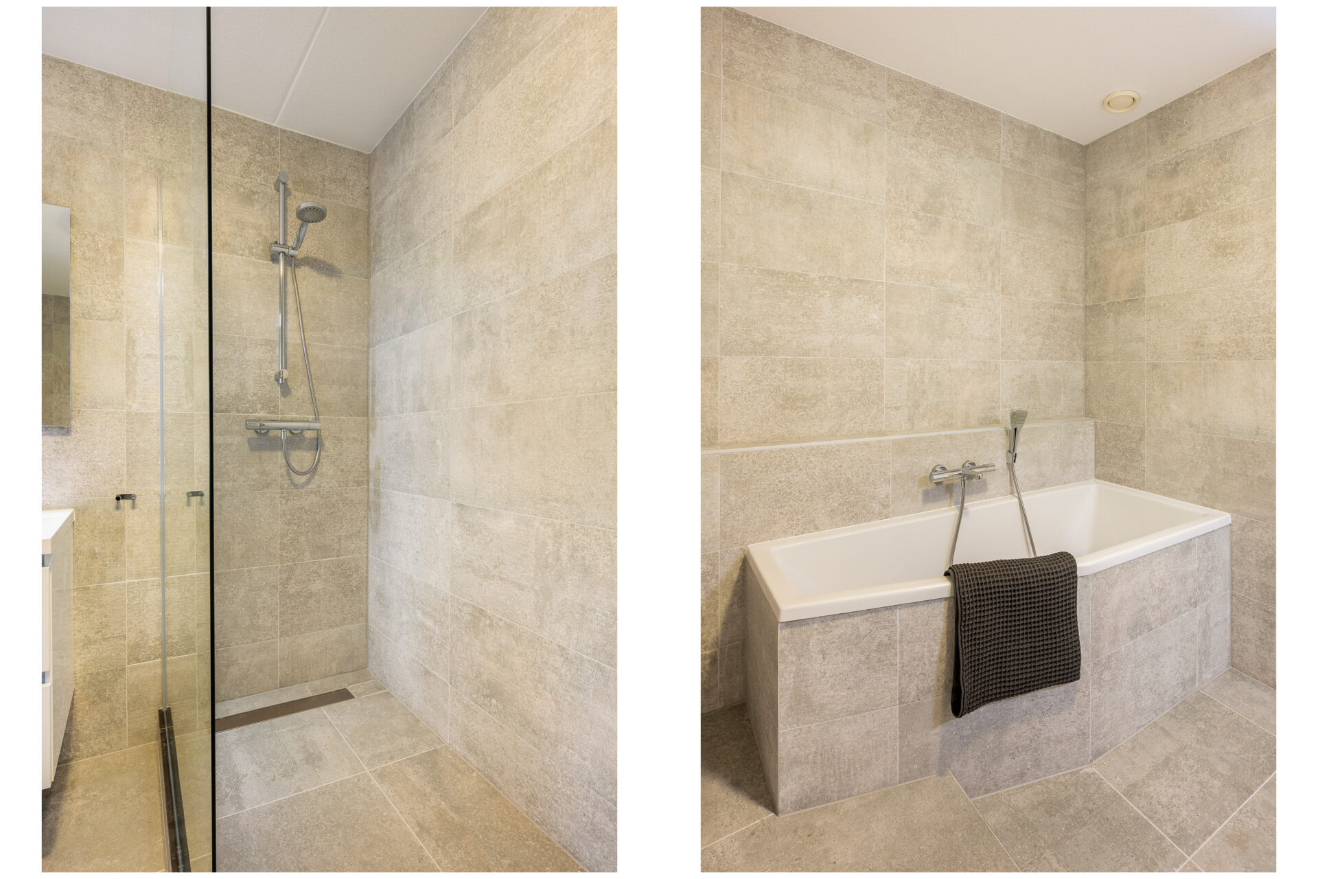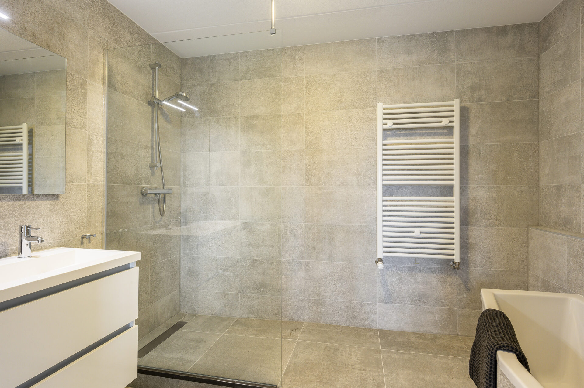 Badkamer: ± 6 m², voorzien van een ligbad met douchefunctie, inloopdouche, dubbele wastafel met meubel en designradiator