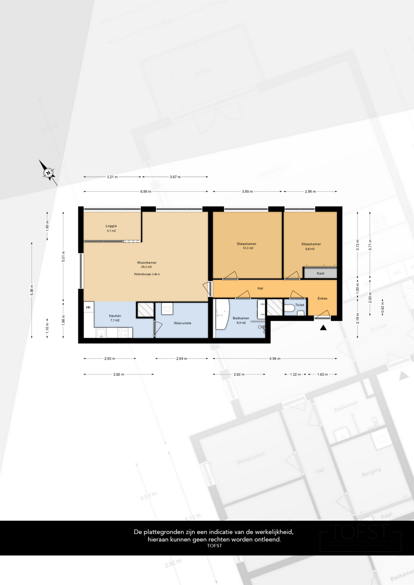 Woonoppervlakte: ± 93 m² (inclusief loggia)