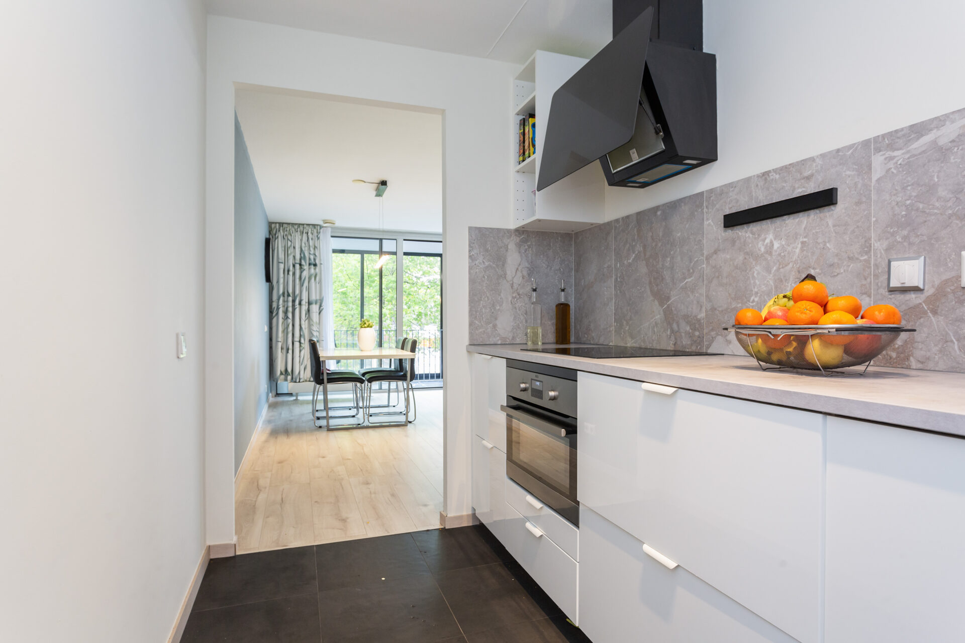 Entree! De woonkamer is licht en ruim dankzij de grote raampartijen over de gehele breedte. Richt het in naar eigen wens: een fijne zithoek en royale eettafel passen hier met gemak. Aansluitend aan de woonkamer bevindt zich de zonnige serre. Dé plek voor het creëren van een lekkere loungehoek om vervolgens in alle rust te genieten van het stadse leven! De moderne keuken is in 2022 geheel gerenoveerd. De prachtige Marmerlook wandtegels in combinatie met de zwarte elementen geven het geheel een strakke en moderne uitstraling.