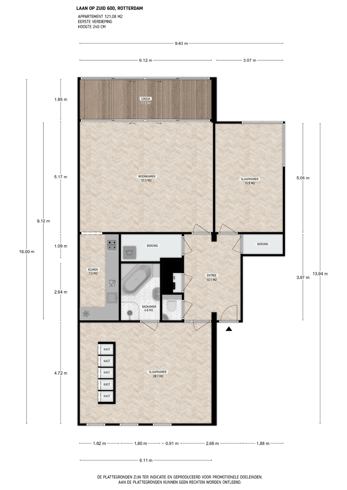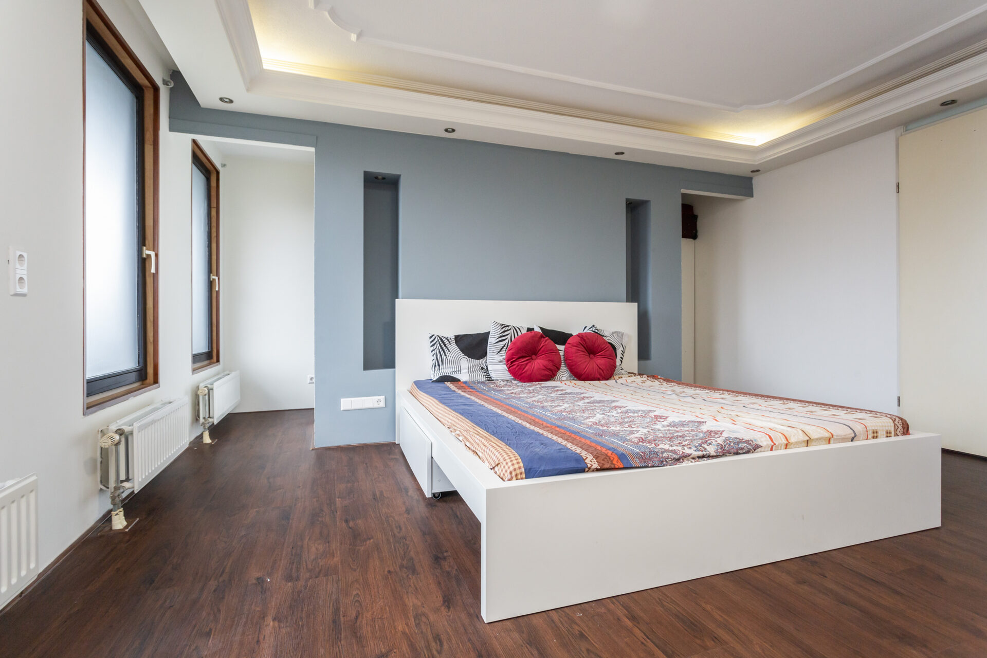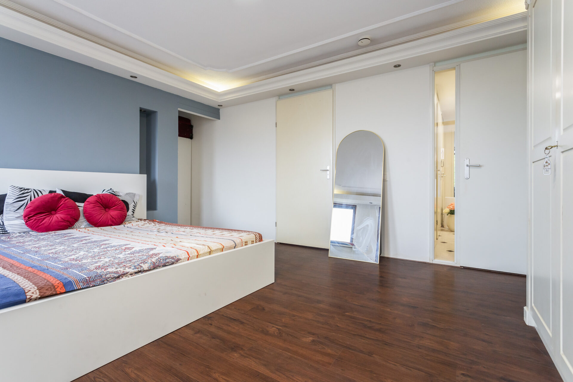Het appartement heeft twee ruime slaapkamers, met de mogelijkheid om een derde te creëren. De master (± 29 m²) fungeert nu als slaapkamer met inloopkast, maar kan eenvoudig worden opgesplitst. Aansluitend vind je de complete badkamer. De tweede slaapkamer (± 16 m²) is ideaal als werk- of logeerkamer en dankzij de hoekligging heerlijk licht met uitzicht op de Laan op Zuid. Ook