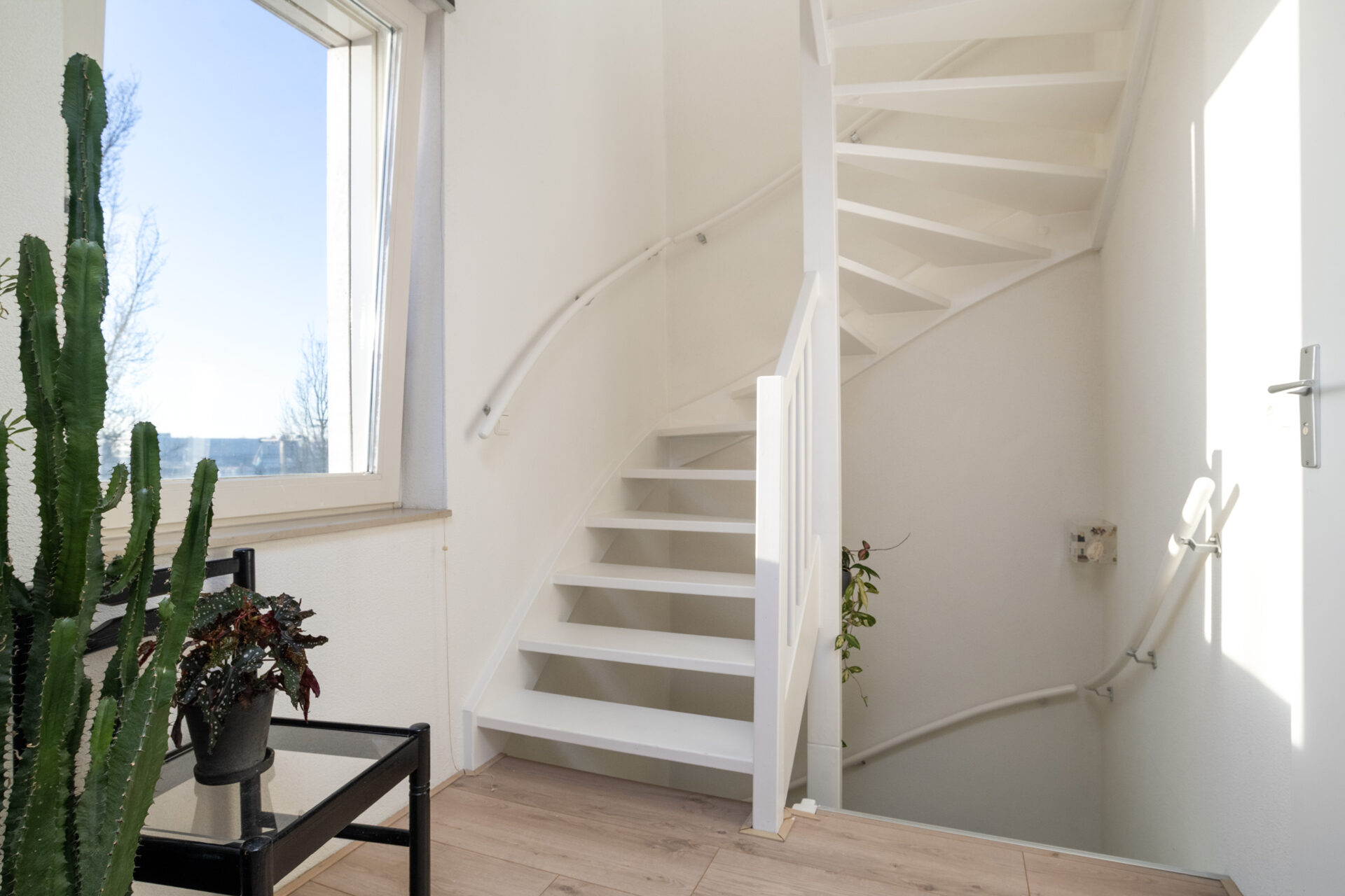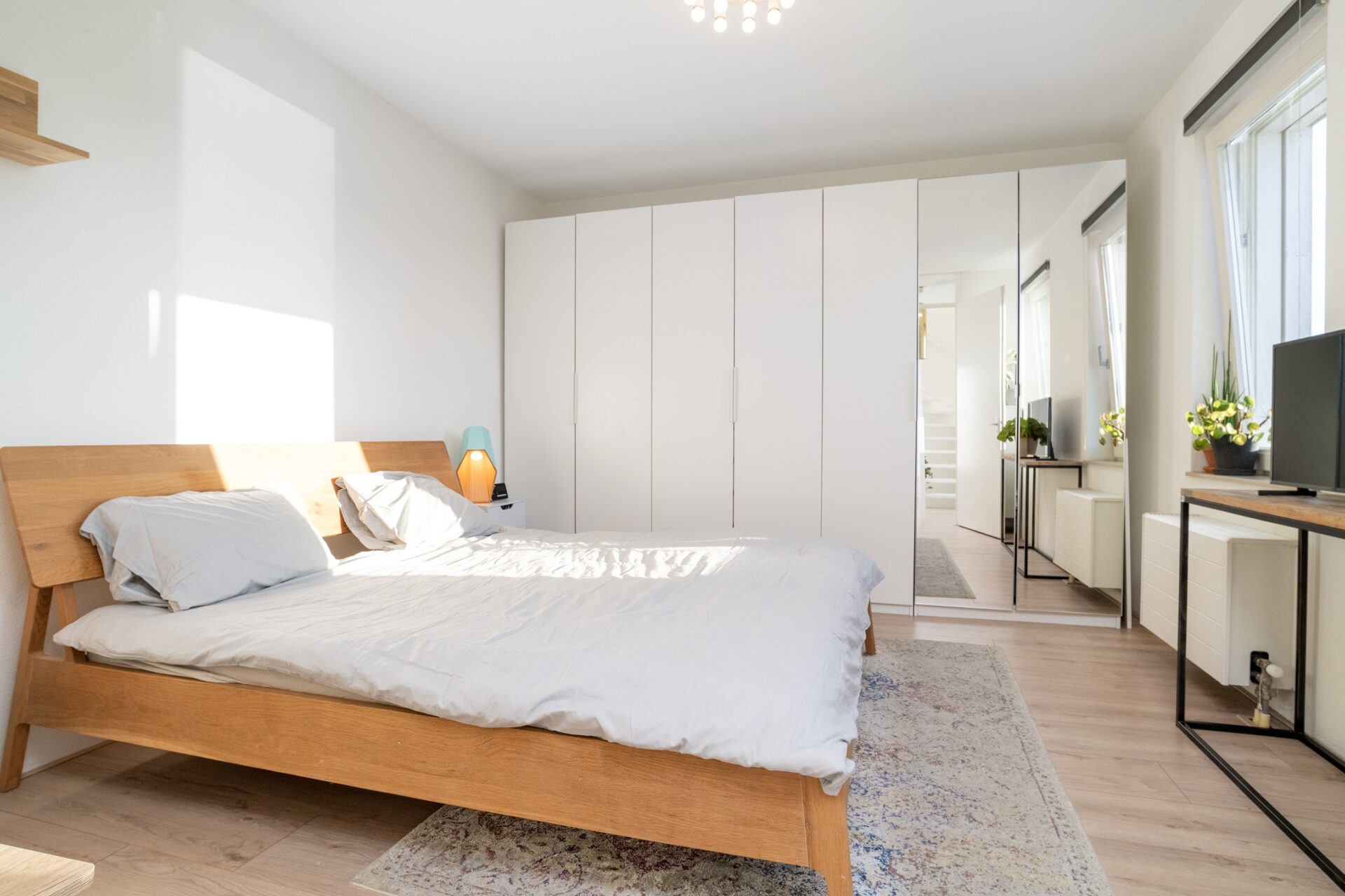 De eerste en tweede verdieping zijn ingericht als slaapetages. Op beide verdiepingen vind je een bijzonder ruime slaapkamer, waardoor comfort hier voorop staat. De badkamer is in 2024 vernieuwd en heeft een luxe, moderne uitstraling. Aan opbergruimte geen gebrek dankzij een handige inpandige berging én een externe berging. Parkeren doe je zorgeloos op je eigen parkeerplaats op het afgesloten terrein.
