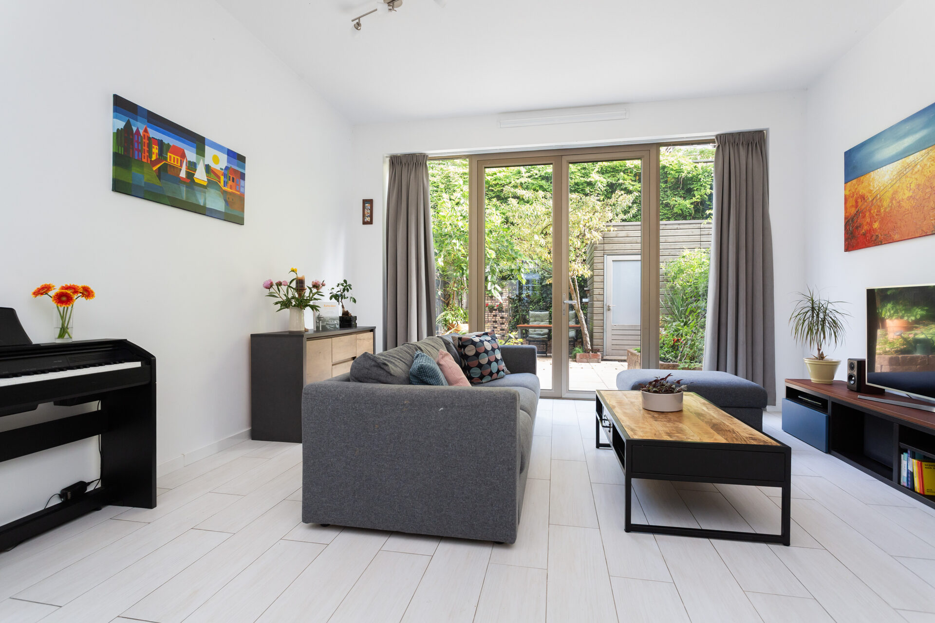Zodra je de living binnenkomt vallen de ruimte en het vele daglicht je direct op. Door de grote ramen en openslaande deuren heb je hier zeeën aan daglicht. De open keuken is modern, licht en van alle gemakken voorzien. Stap door de openslaande deuren de gezellige tuin in. Dit is de perfecte plek voor een barbecue, koffiemoment in de zon of speelplezier voor de kids. Achterin de tuin staat een praktische schuur voor je fietsen, tuinspullen of klusgereedschap.