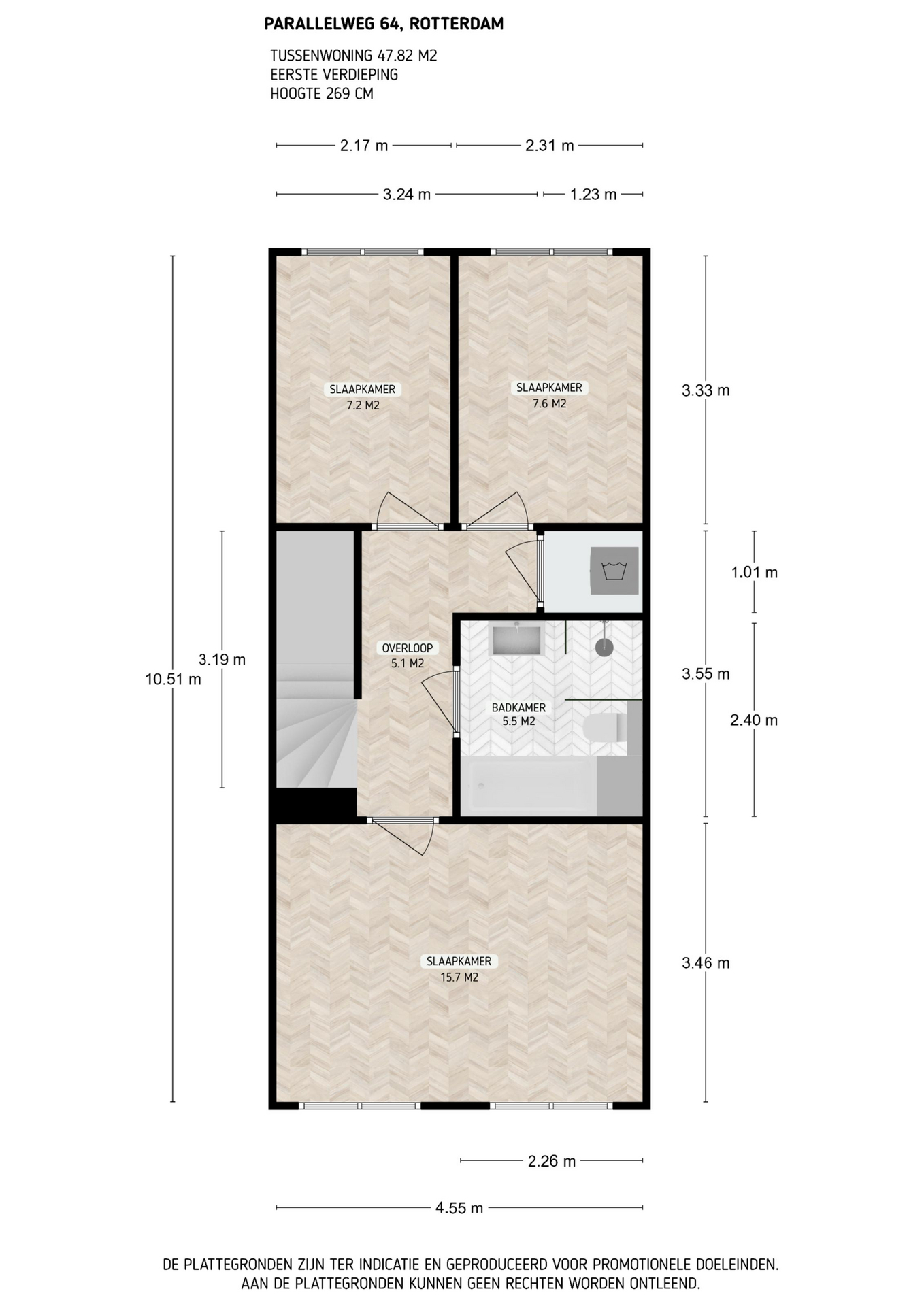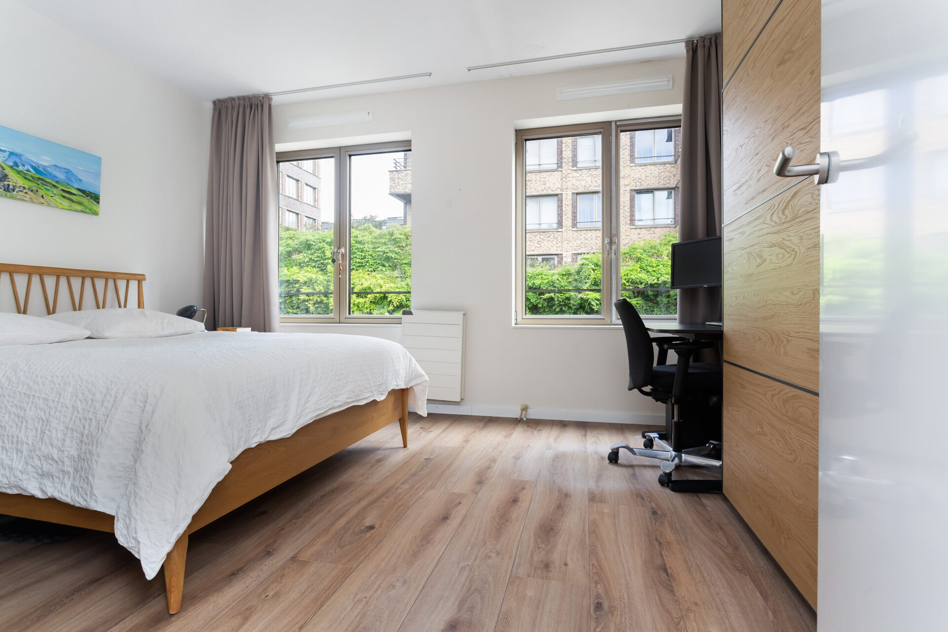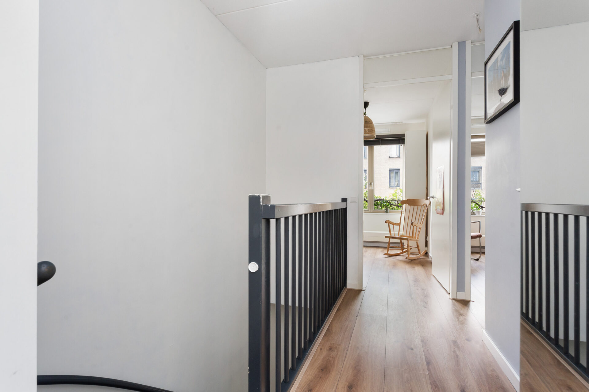 Op de eerste verdieping vind je drie slaapkamers, waaronder de master bedroom aan de achterzijde. De twee kamers aan de voorzijde zijn ideaal in te delen als kinder-, werk- of logeerkamer. De badkamer is netjes en praktisch ingedeeld. Ook is er een separate bergkast met wasmachine aansluiting. Zo is dit lekker uit het zicht. Verder beschikt de woning over een eigen parkeerplaats in de afgesloten parkeergarage.
