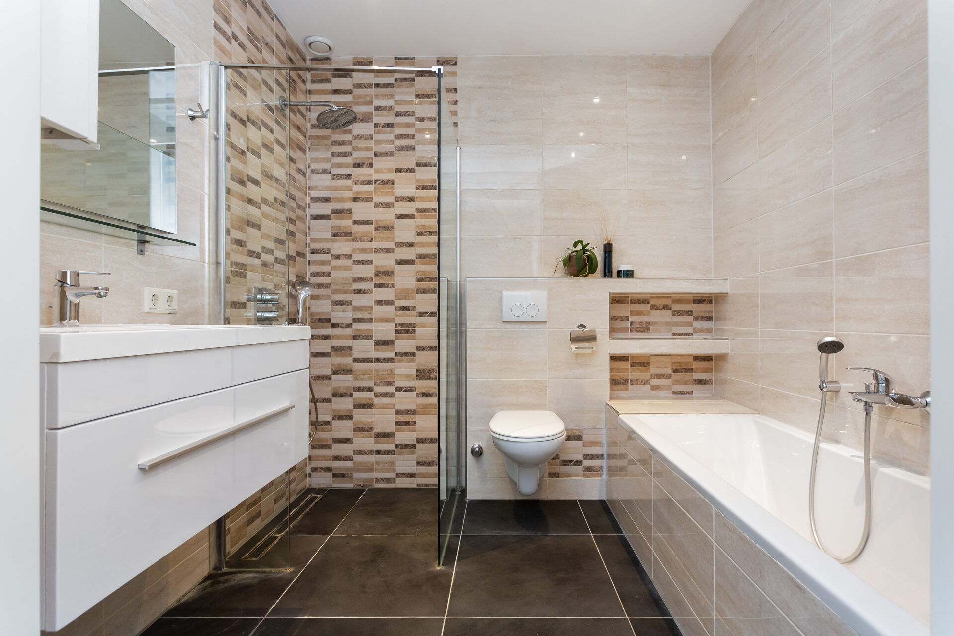 Badkamer: ± 6 m², voorzien van ligbad met douchefunctie, inloopdouche, wastafel met meubel en toilet