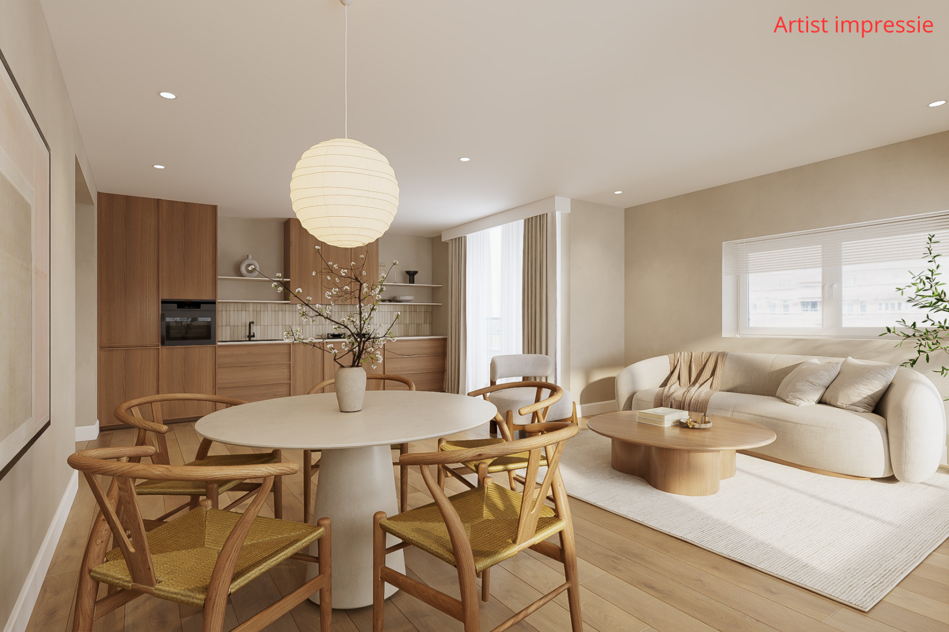 Woonkamer met open keuken: ± 34 m²