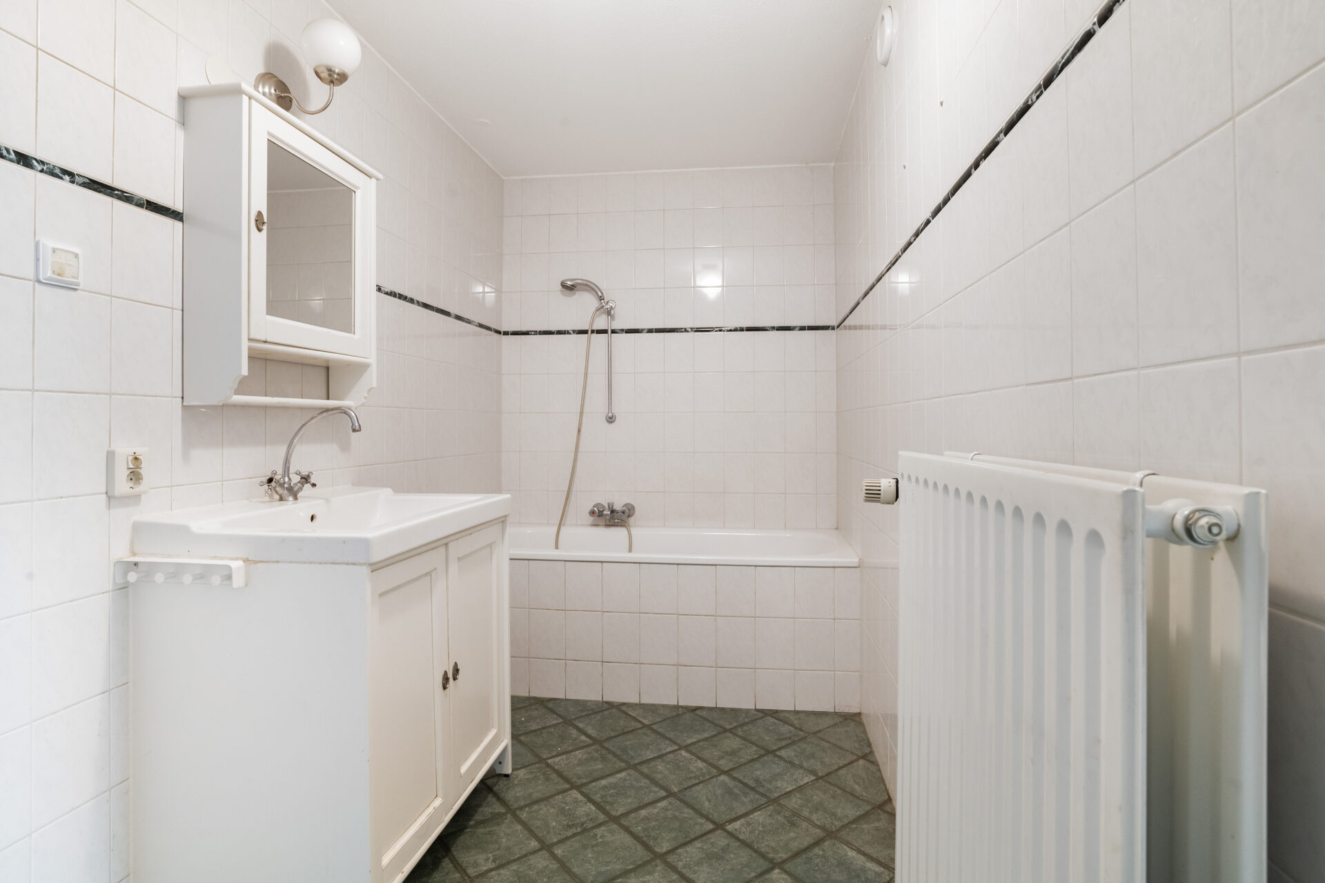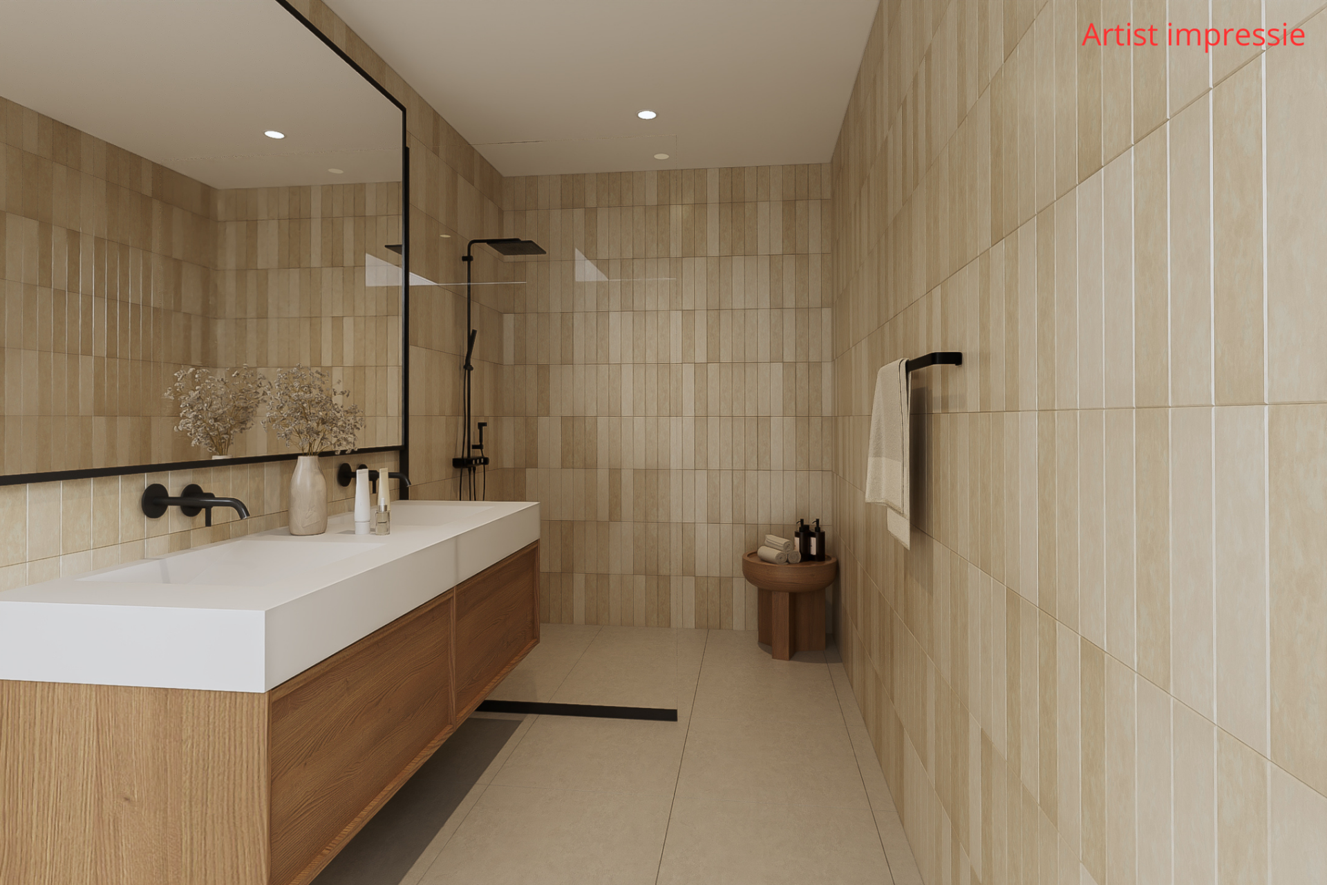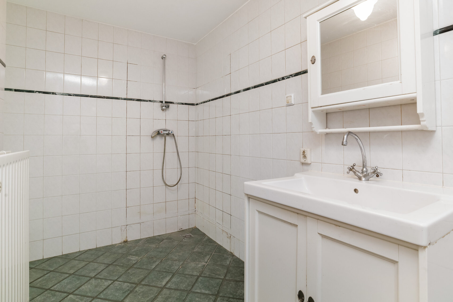 Badkamer: ± 8 m², voorzien van een douche en wastafel met meubel