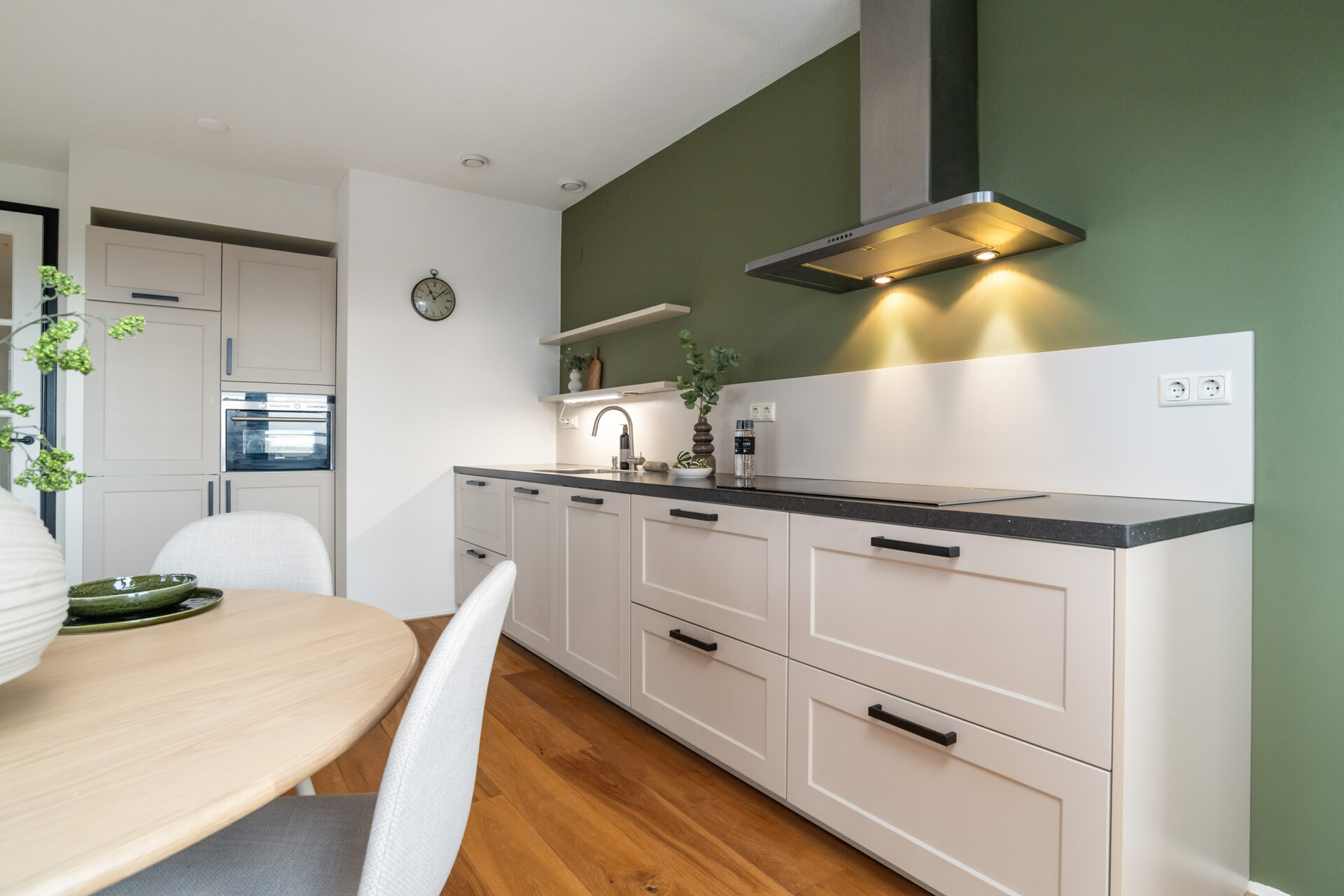 Woonkeuken: ± 21 m² voorzien van diverse Siemens inbouwapparatuur t.w. 5-pits inductiekookplaat, vaatwasser, oven, koelkast, afzuigkap en voldoende kastruimte