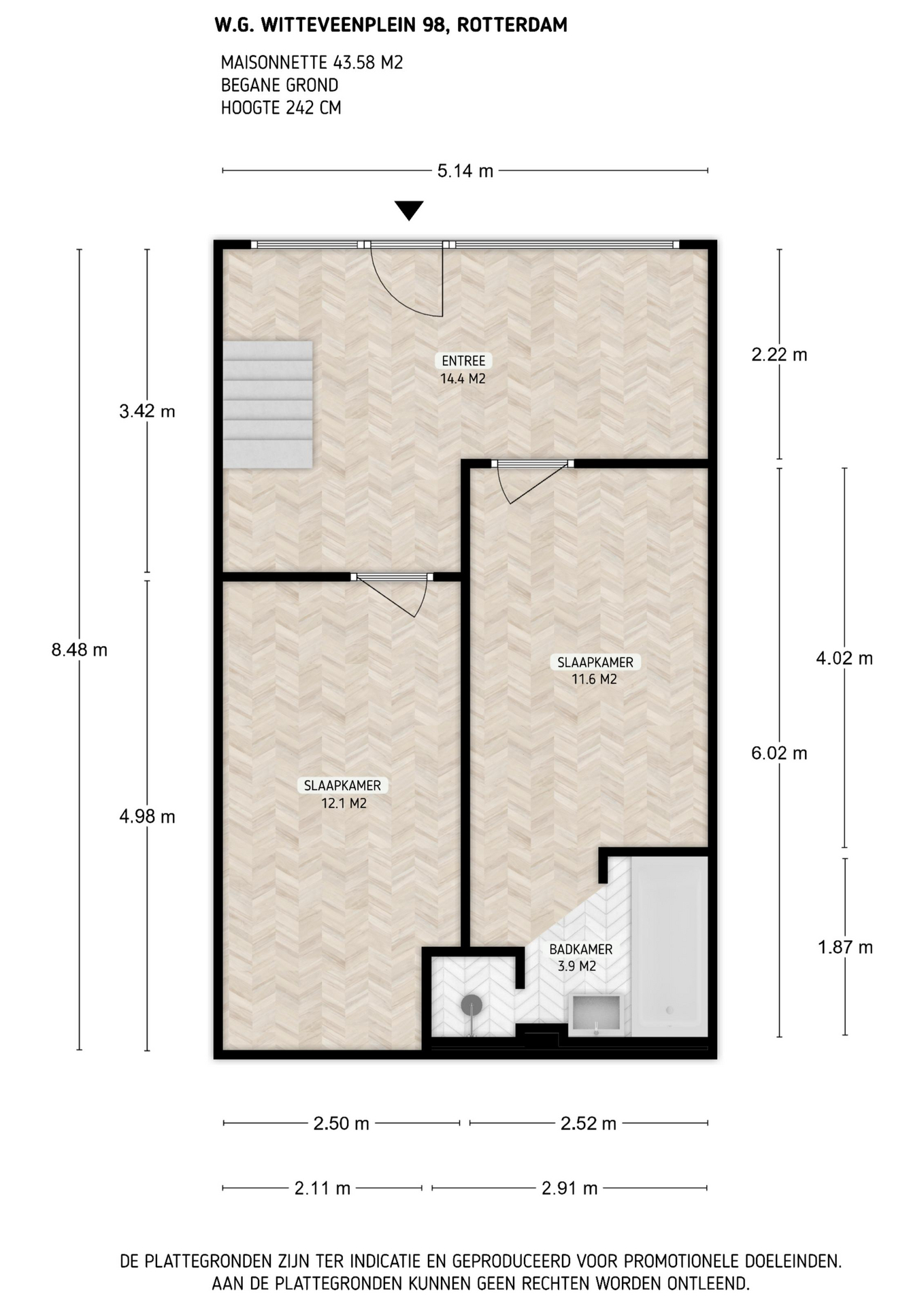 Deze informatie is met de nodige zorgvuldigheid samengesteld. Hierbij zijn wij deels afhankelijk van informatie die wij van derden ontvangen. Indien bepaalde informatie voor u van wezenlijk belang is dan adviseren wij u deze op juistheid te controleren. Onzerzijds wordt geen aansprakelijkheid aanvaard voor enige onvolledigheid, onjuistheid of anderszins, dan wel de gevolgen daarvan. Alle opgegeven maten en oppervlakten zijn indicatief.