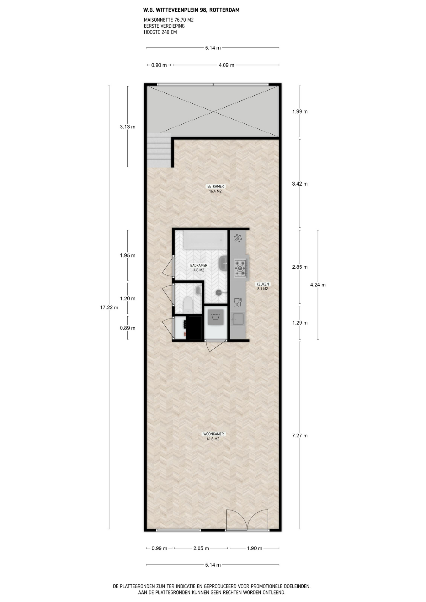 Woonkamer: ± 42 m² met toegang tot het dakterras: ± 84 m²