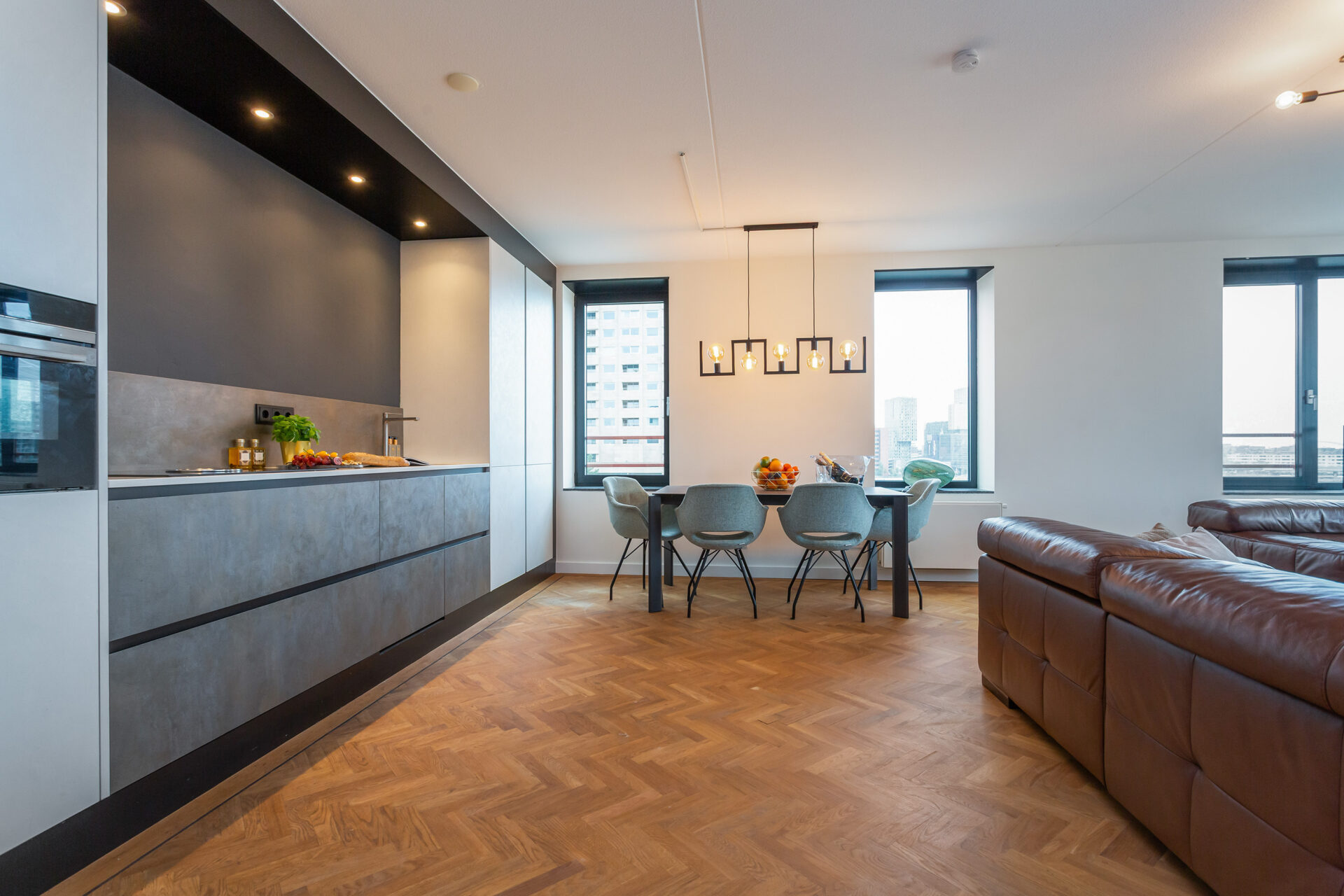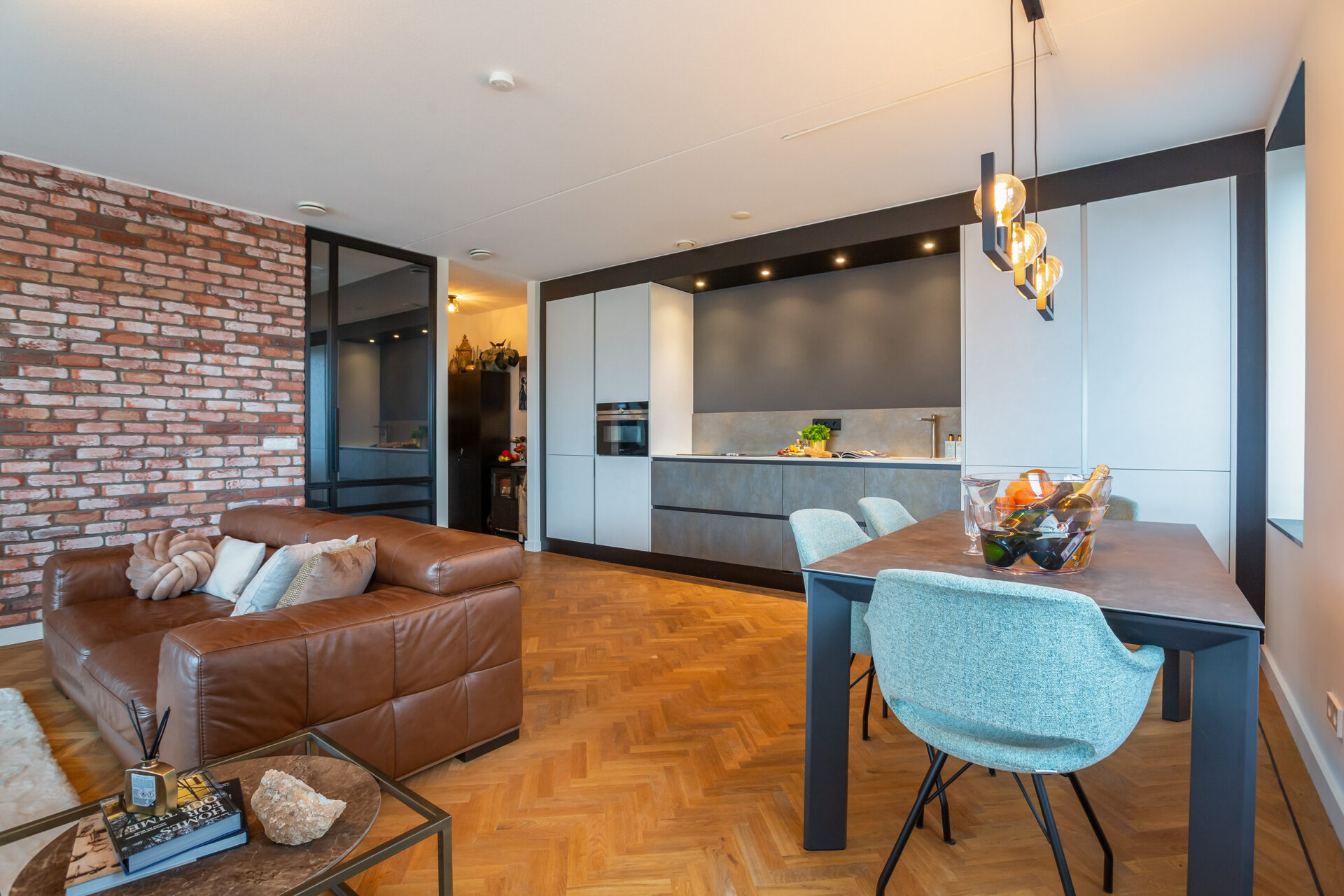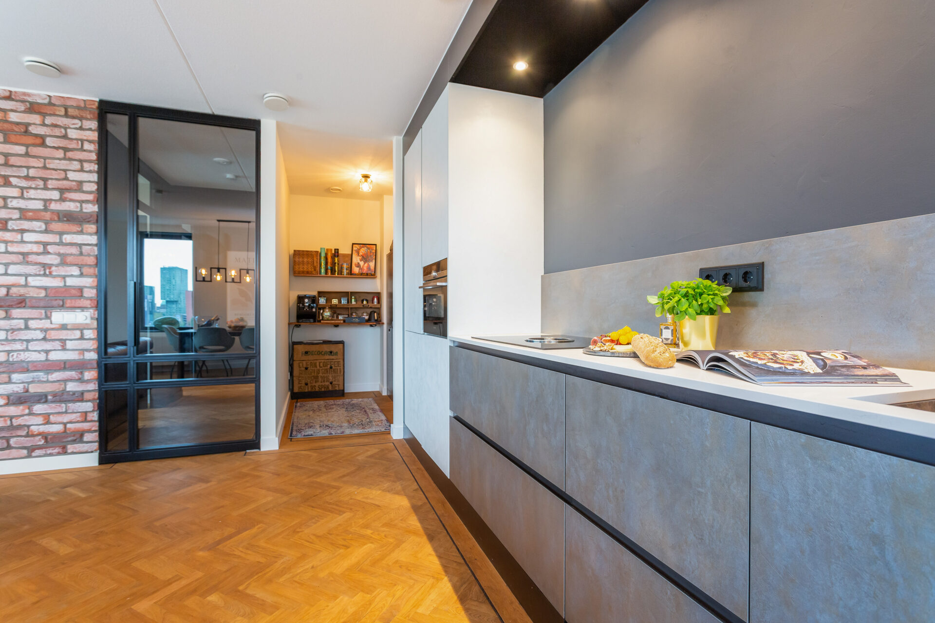 Welkom! Bij binnenkomst zie je meteen dat aan elk detail is gedacht, van de afwerking tot de materialen. Alles klopt hier. In het leefgedeelte wordt de aandacht direct getrokken naar de flinke raampartijen van plafond tot vloer. De grote ramen laten volop natuurlijk licht binnen, waardoor de ruimte nog indrukwekkender aanvoelt. Doordat de woning op een hoek is gelegen kun je van meerdere uitzichten tegelijk genieten. Elke hoek heeft iets speciaals. Het royale woonoppervlak biedt alle ruimte voor een fijne zit- én eethoek. De luxueuze open keuken sluit naadloos aan op de stijl van de woning en is uitgerust met alles wat je nodig hebt. En dankzij de handige pantry heb je ook nog eens extra opbergruimte. Ideaal!