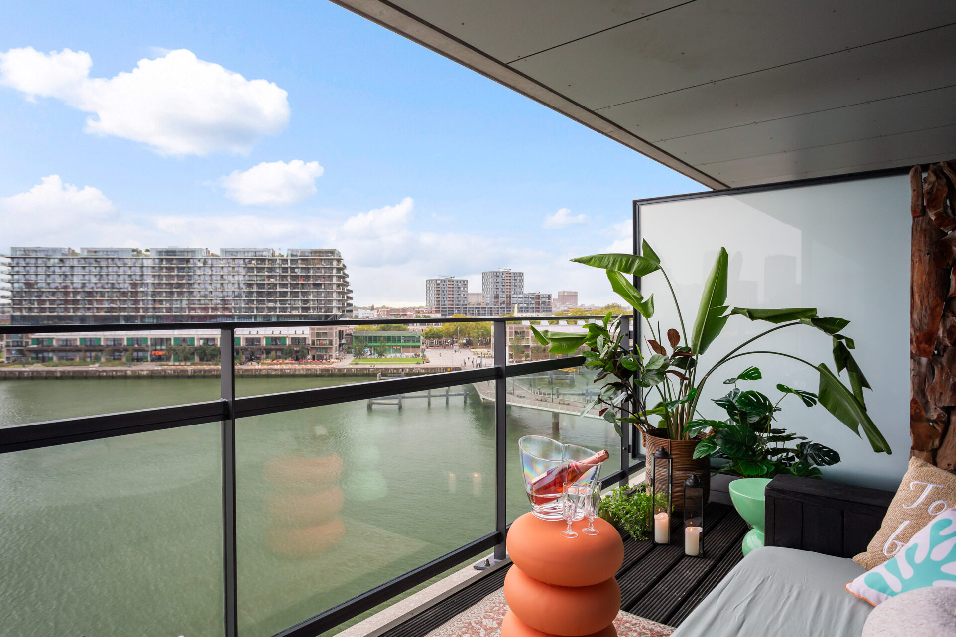 Met veel plezier heb ik de afgelopen jaren hier in Montevideo gewoond en de ontwikkelingen van de pier live meegemaakt. Je woont midden in de stad maar vaak voelt dat niet zo en heerst er een bepaalde rust vooral op het balkon waar je lekke boven het water hangt. Een rondje op de pier lopen is alle iconische landmarks van Rotterdam zien: Hotel New York, de Euromast en de Erasmusbrug. In je appartement een on-Nederlands uitzicht hebt, lekker wijds met skyline, een echt een stukje Manhattan aan de Maas.
