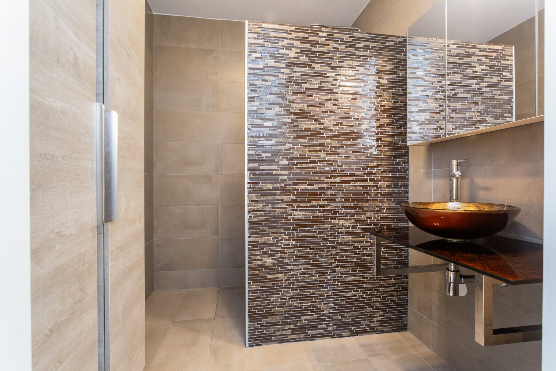 Badkamer: ± 4 m², voorzien van inloopdouche en wastafel met meubel