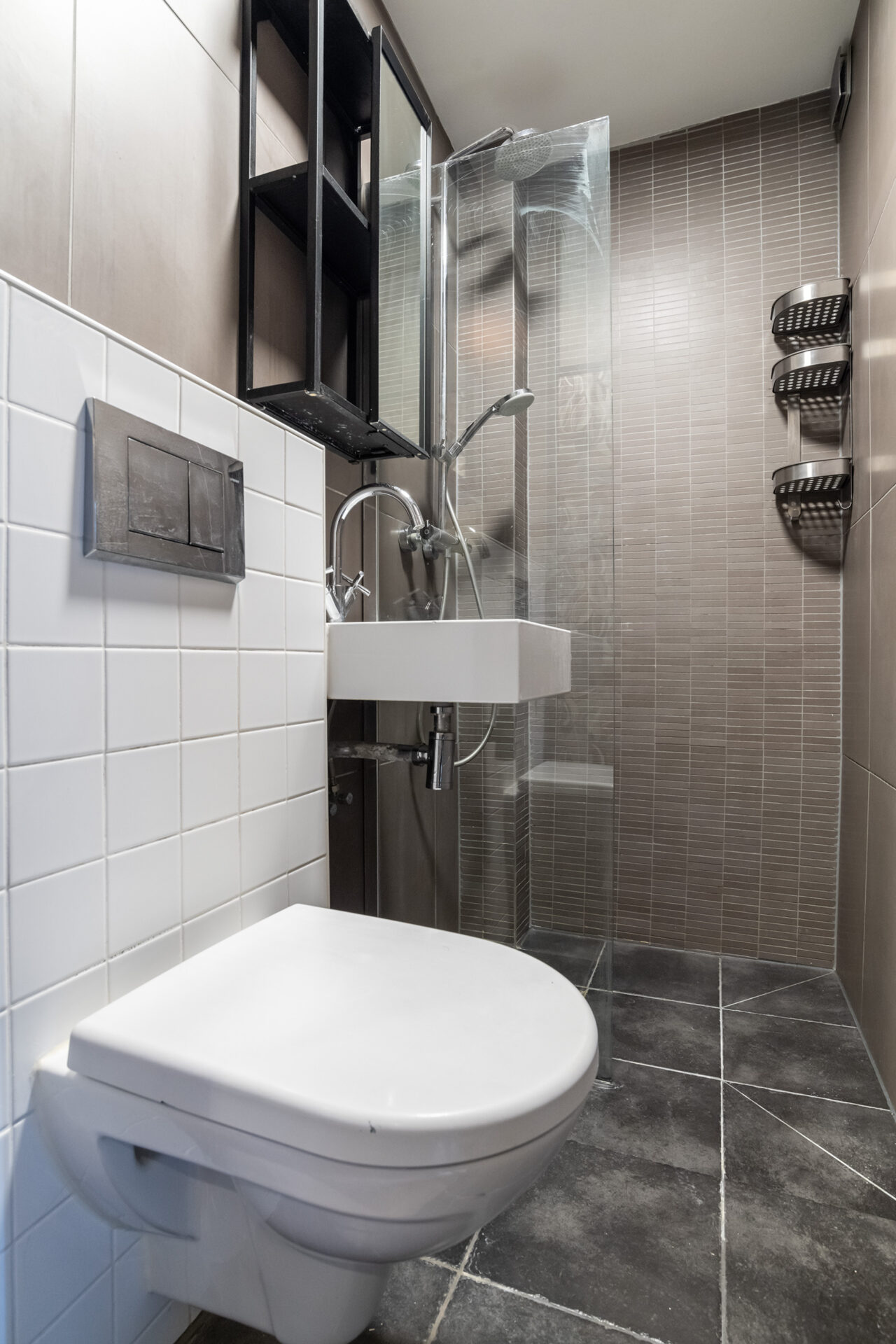 Badkamer: ± 2 m², voorzien van een inloopdouche, enkele wastafel en toilet