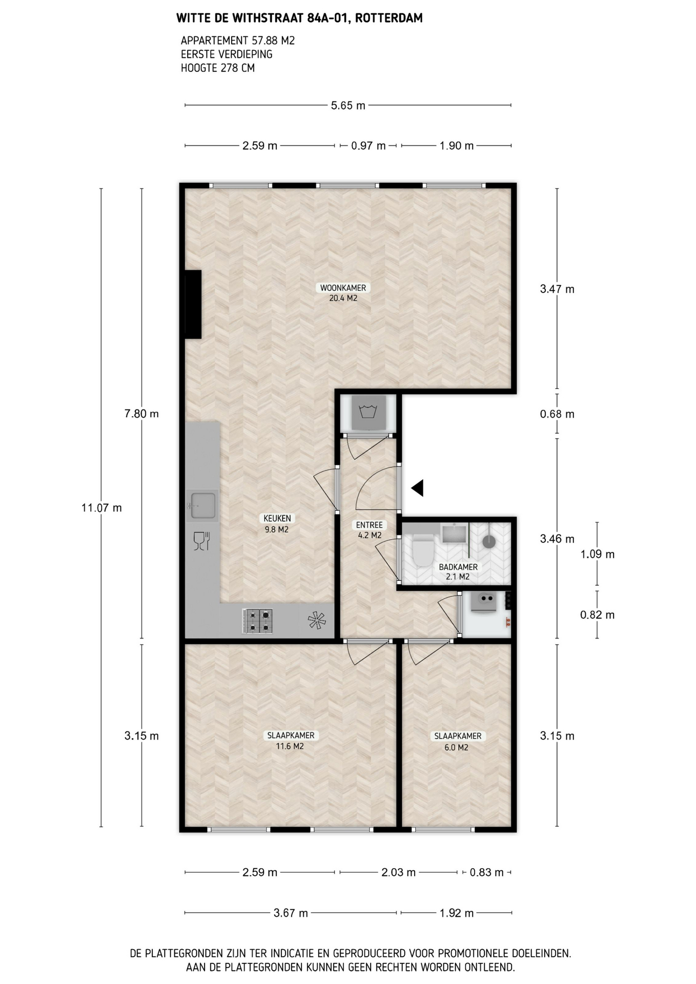 Deze informatie is met de nodige zorgvuldigheid samengesteld. Hierbij zijn wij deels afhankelijk van informatie die wij van derden ontvangen. Indien bepaalde informatie voor u van wezenlijk belang is dan adviseren wij u deze op juistheid te controleren. Onzerzijds wordt geen aansprakelijkheid aanvaard voor enige onvolledigheid, onjuistheid of anderszins, dan wel de gevolgen daarvan. Alle opgegeven maten en oppervlakten zijn indicatief.